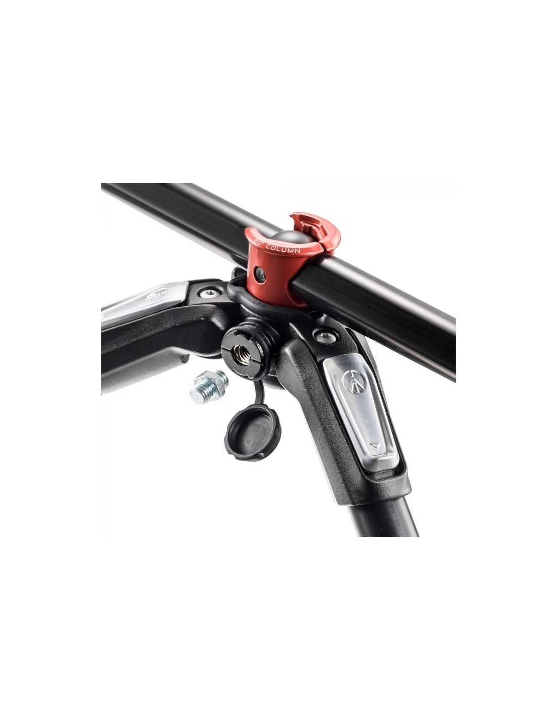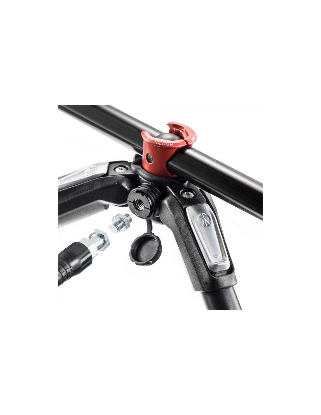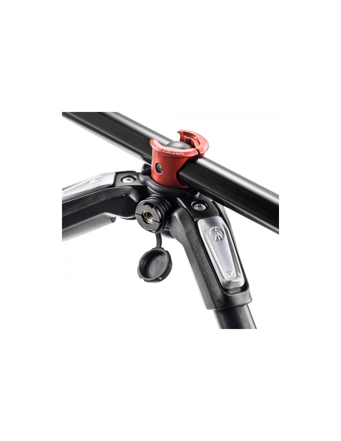La característica clave del 190XPRO4 es su mecanismo de columna central de 90°, que permite a esta ser extendida verticalmente como es normal, u horizontalmente, lo que abre una amplia gama de posibilidades de encuadre y toma; esta función hace del 190XPRO4 un trípode extremadamente versátil, adecuado para una amplia variedad de aplicaciones de fotografía y vídeo. El mecanismo para situar la columna en horizontal es aloja en el interior de la estructura superior del trípode para lograr un tamaño más compacto, y se extiende de una forma rápida y sencilla cuando es necesario. El cambio de columna vertical a horizontal no requiere desmontar ninguna pieza, y se puede realizar incluso con la cámara montada.