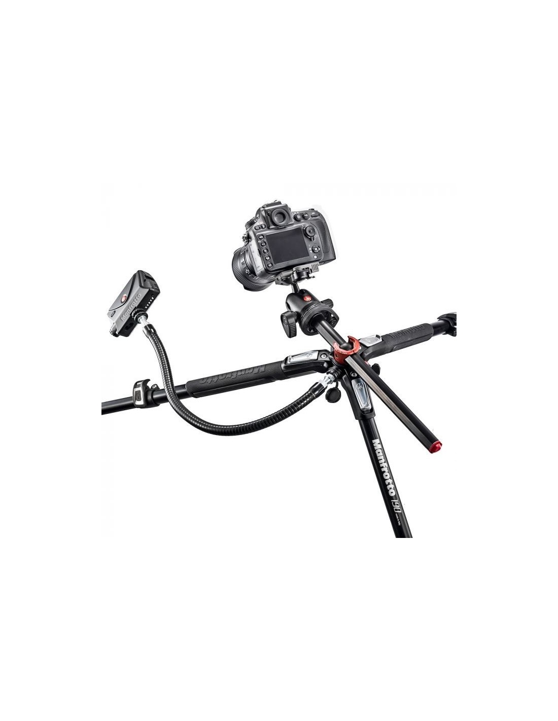 La estructura superior del 190XPRO4 posee un conector Easy Link para añadir fácilmente accesorios de foto o video (como una luz LED, un flash, un reflector, o cualquier otro equipamiento) montados sobre un brazo de extensión o un bracket, convirtiendo así el trípode en un práctico estudio móvil.
