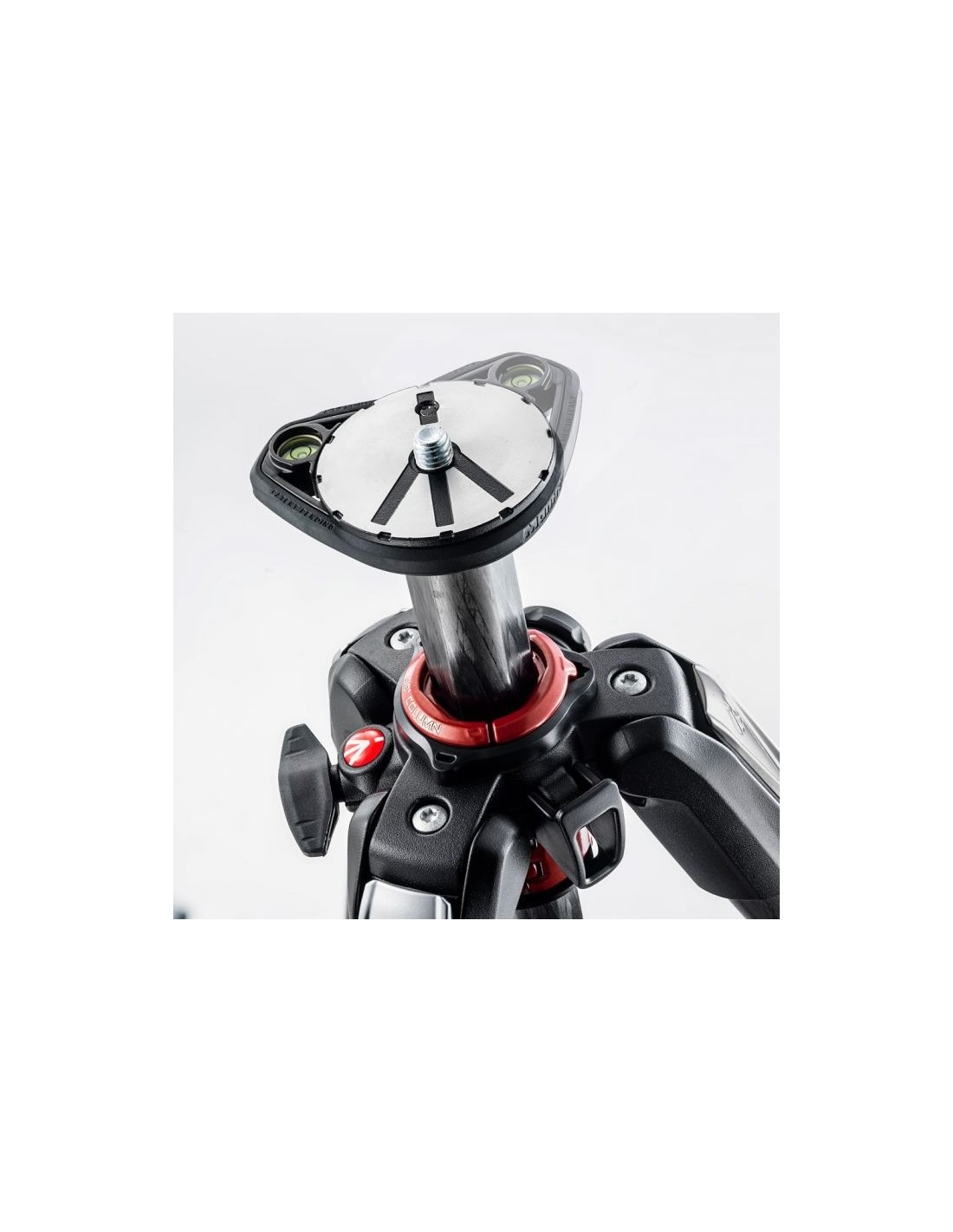 Se incorpora además un nivel de burbuja en la parte superior de la columna central para un encuadre más preciso. Dicho nivel gira de forma absolutamente libre alrededor de la columna central, de forma que se puede posicionar en la forma más sencilla de observarlo mientras ajustemos el trípode, sin ser tapado por el cabezal o la cámara.