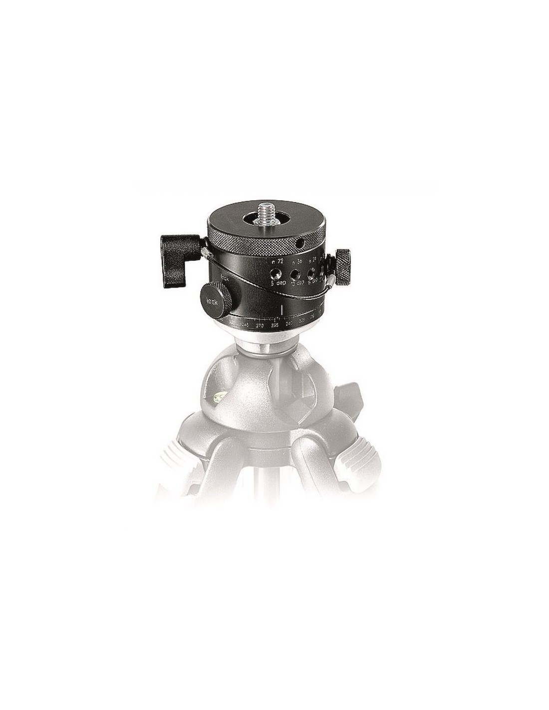 El conjunto de posiciones de la 300N le ofrece una amplia opción de ángulo de rotación al igual que nos facilita un número de fotos necesarias para completar un panorama de 360º y cubrir las peticiones más comunes de los fotógrafos dependiendo de la cámara/ objetivo usado. Para seleccionar un ángulo más fácilmente, use el tornillo selector ''clickstop'', ya incluido y suministrado con un cable de seguridad para evitar que se separe de la rótula y lo pueda perder.