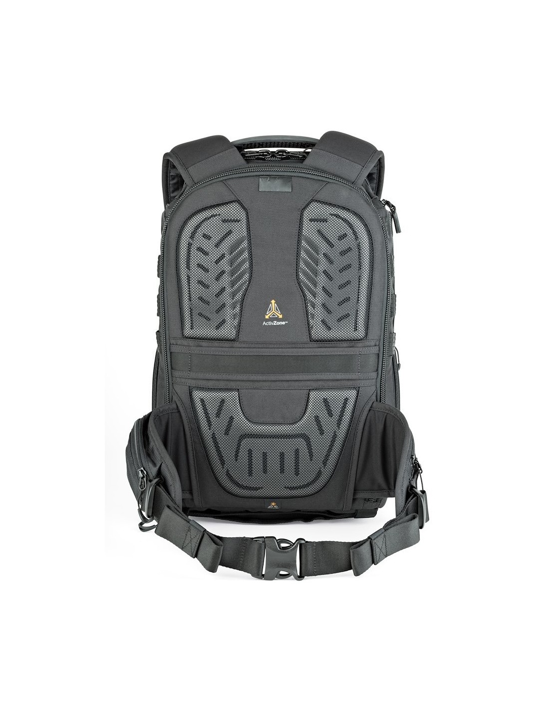 ActivZone™, este sistema proporciona soporte a las correas de hombro, lumbar y cinturón para lograr el máximo confort durante el transporte. El panel trasero permite la ventilación e integra una correa para trolley strap.