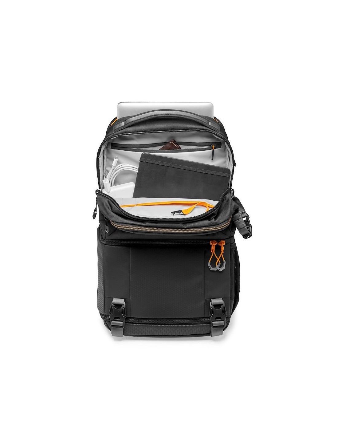Capacidad para transportar una mirrorless o DSLR con objetivo montado o kit de dron plegable, 2-3 objetivos extra, portátil hasta 15” y tableta estándar, además de equipo personal.