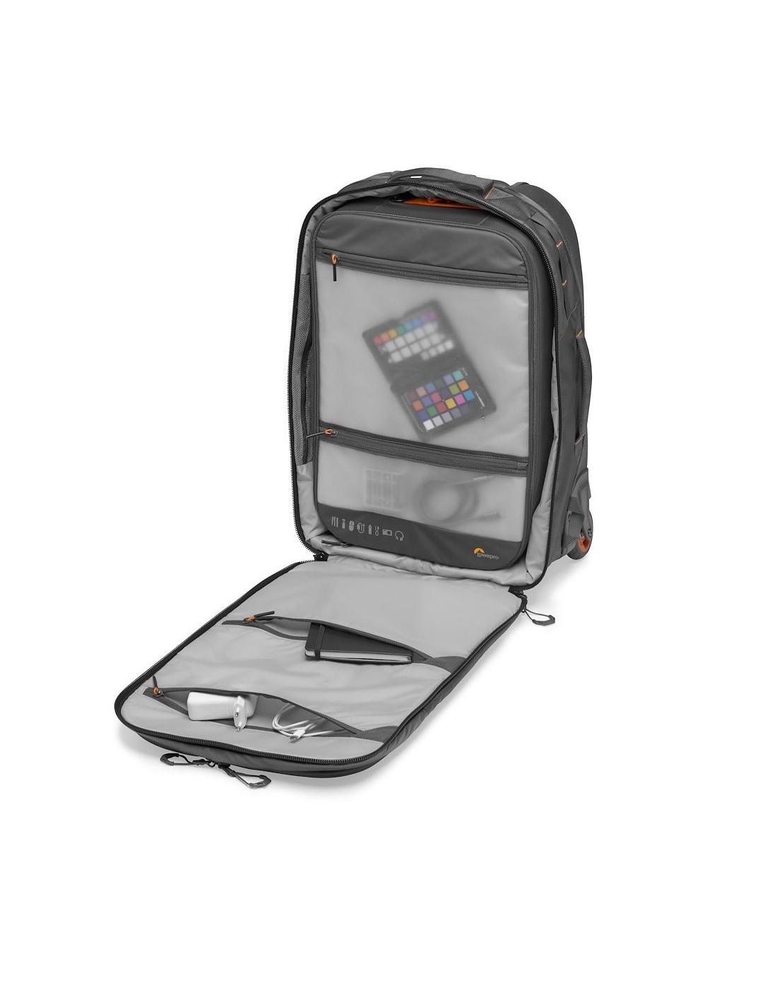 La Maleta con ruedas tipo Trolley WHISTLER RL 400 AW de Lowepro con un diseño híbrido semirrígido, combinado con tejido avanzado Nylon 66 resistente al agua y cubierta AW, para una mayor protección del equipo.