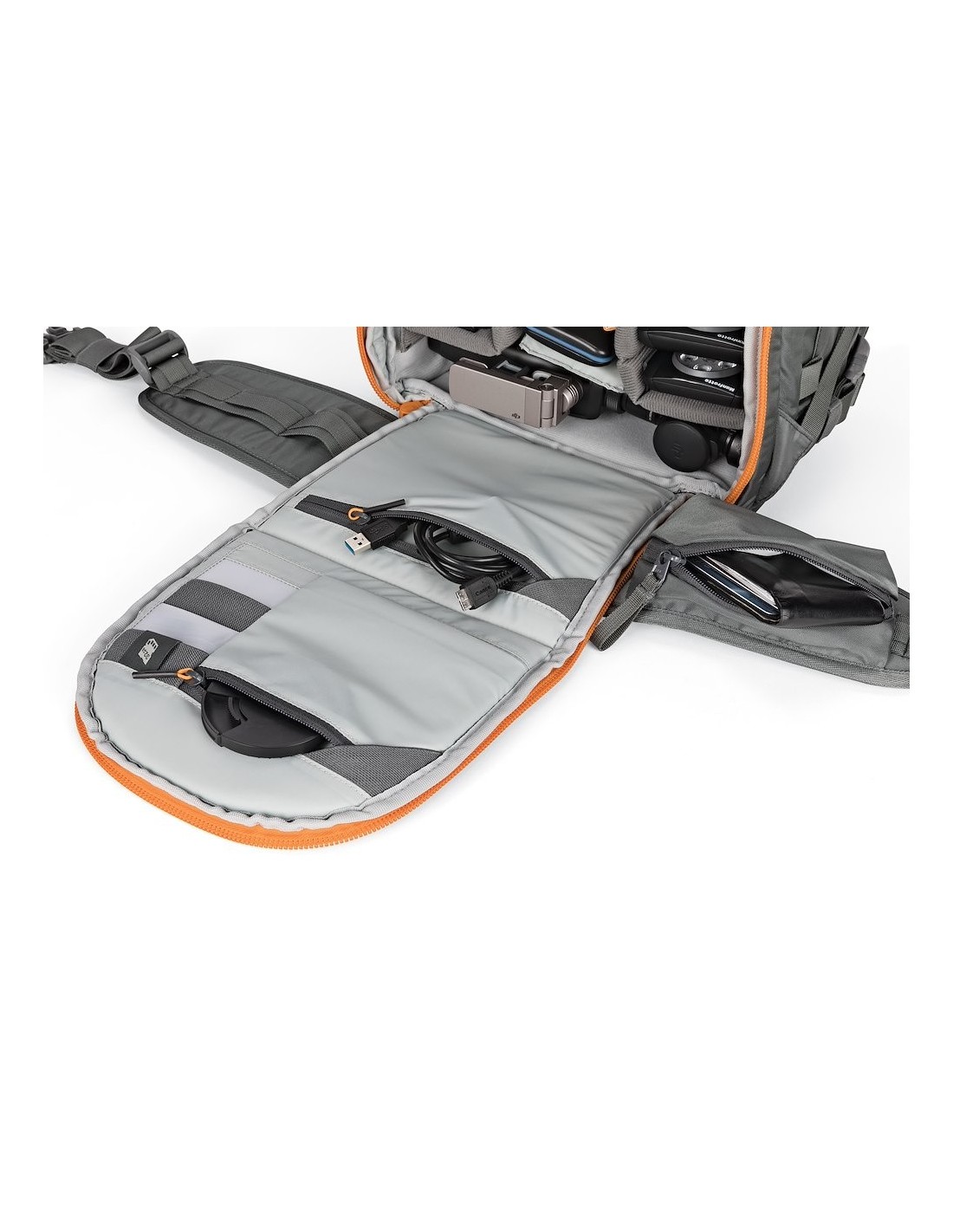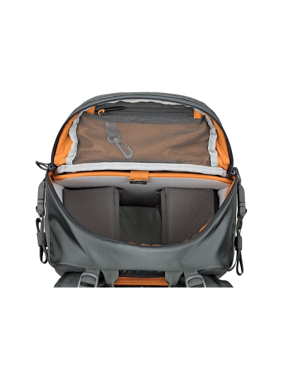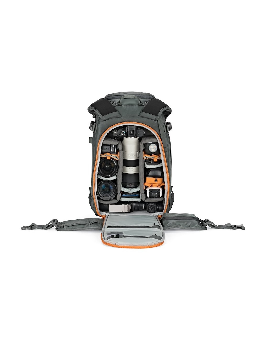 Capacidad: para cámaras profesionales full frame con grip extendido incluyendo las Canon 1D y Nikon D5. Puede alojar una DSLR con grip ampliado junto a objetivos 58mm f/1.4, 24-70mm f/2.8, 24mm f/1.4; flash SB910, GoPro®, DJI Mavic Pro, DJI Osmo, ordenador portátil de 15 pulgadas y equipo personal.