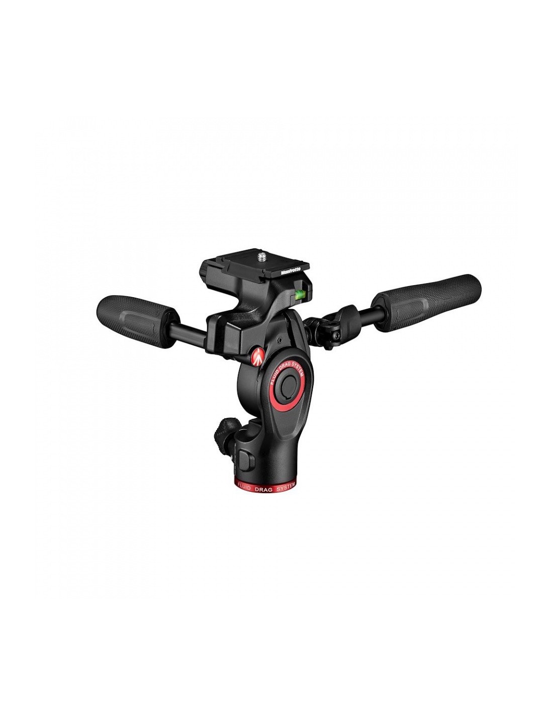 Innovador cabezal fluido de viaje de 3 vías, que cuenta con asas totalmente plegables para una compacidad incomparable y una robustez notable, con una carga útil de hasta 6 kg.