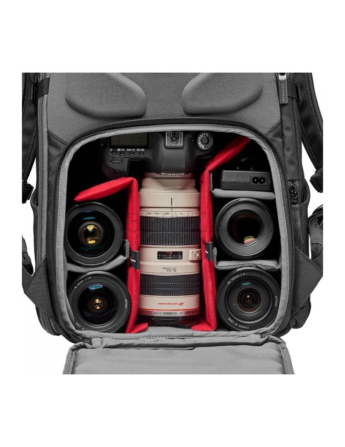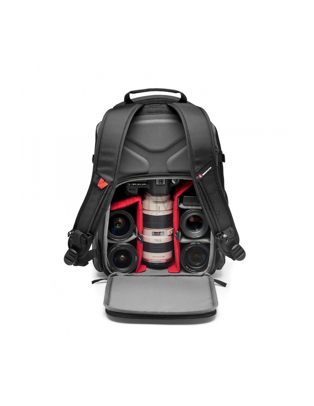 El compartimento acolchado para la cámara cuenta con el sistema de protección Slim-Tech de Manfrotto y está oculto cerca de tu cuerpo en la parte trasera de la mochila para una máxima seguridad. Proporciona una protección extremadamente compacta del equipo. Fabricado en EVA especial de alta elasticidad y termoformado, combinado con una capa extra de espuma, este sistema divisor aumenta la capacidad de la bolsa de la cámara, permitiéndole llevar más equipo a la vez que ofrece una seguridad sin concesiones.