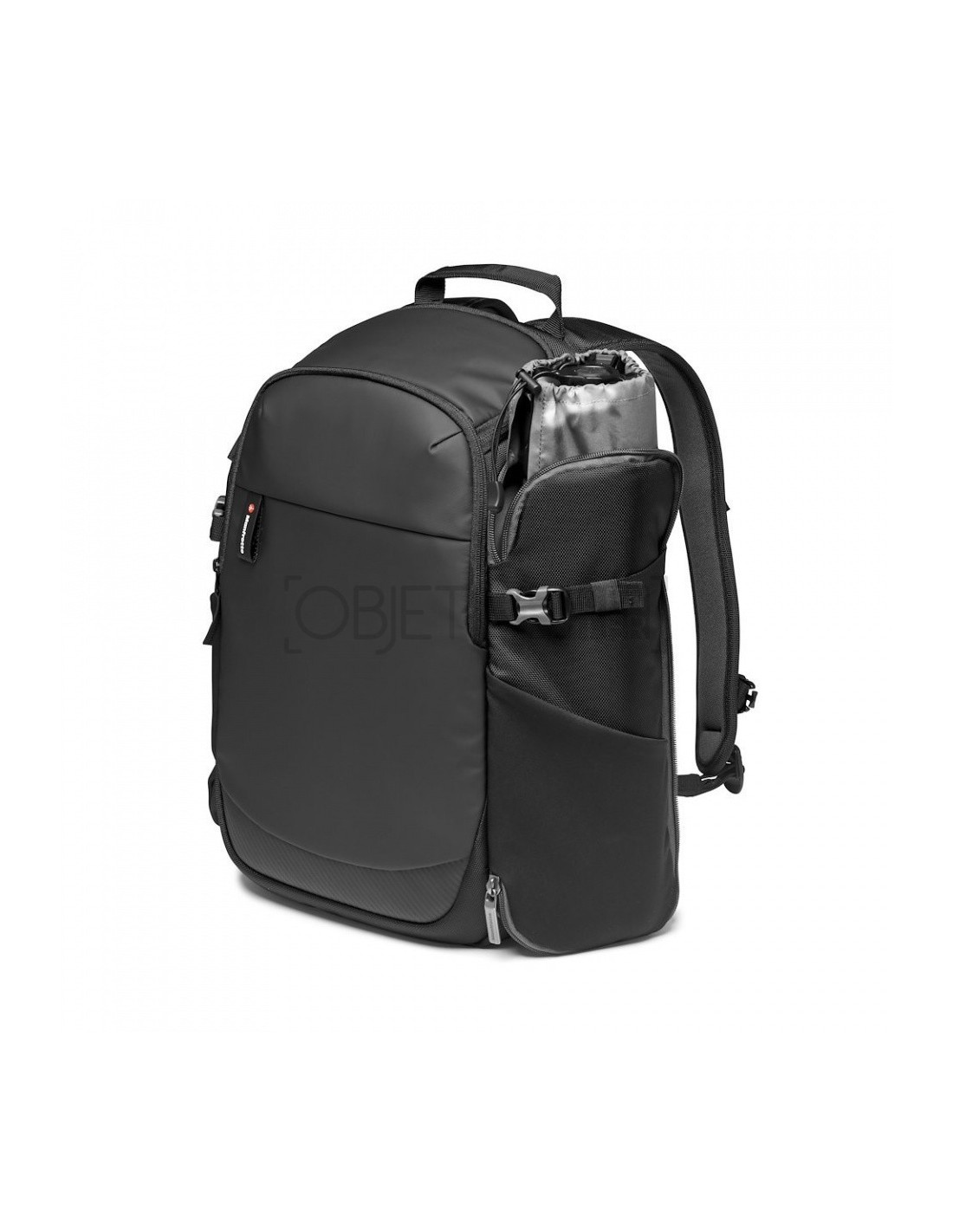También encontramos dos opciones para transportar el trípode: un bolsillo lateral expandible (perfecto para modelos de la gama de trípodes Manfrotto Befree Advanced) y un enganche exterior para trípode. Además, la Advanced² Befree incorpora una correa estabilizadora con conector para el gancho para contrapeso que incorpora la gama de trípodes Befree Advanced, para mejorar la estabilidad de estos al disparar en condiciones difíciles como viento.