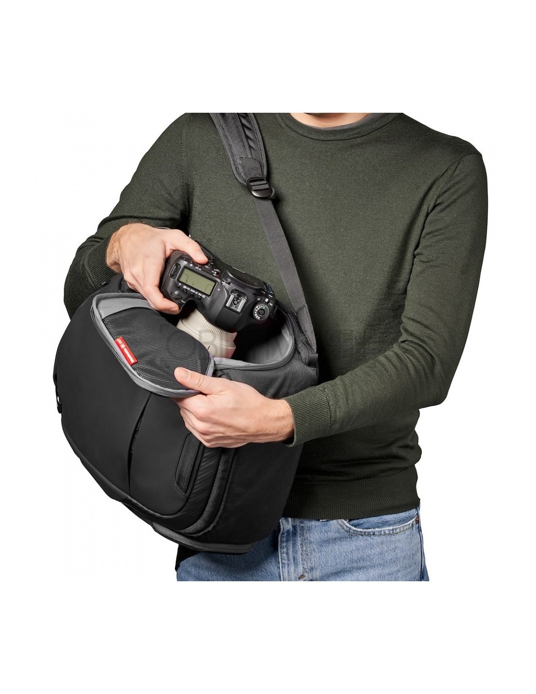 Tiene capacidad para equipo DSLR como una Canon EOS 5D con 3-4 objetivos adicionales dependiendo del tamaño (como un 16-35/2.8, 24-70/2.8 o un 70-200/2.8).
