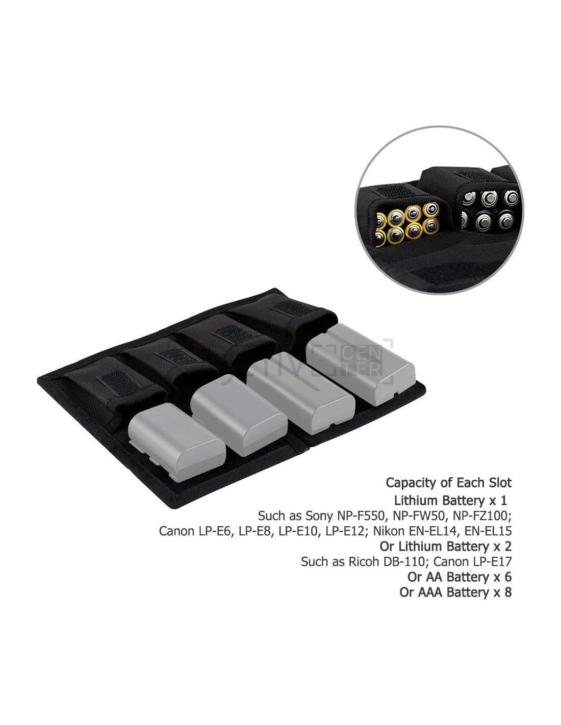 Comodidad: los bolsillos separados mantienen las baterías de la cámara perfectamente y las hacen organizadas. La cinta de velcro permite un acceso rápido y fácil a las baterías.