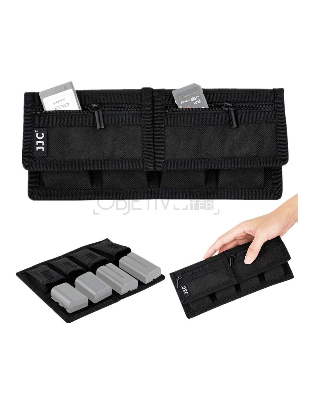 JJC FUNDA TARJETAS DE MEMORIA + 4 BOLSILLOS PARA BATERIAS CÁMARA - B0834W5PFZ