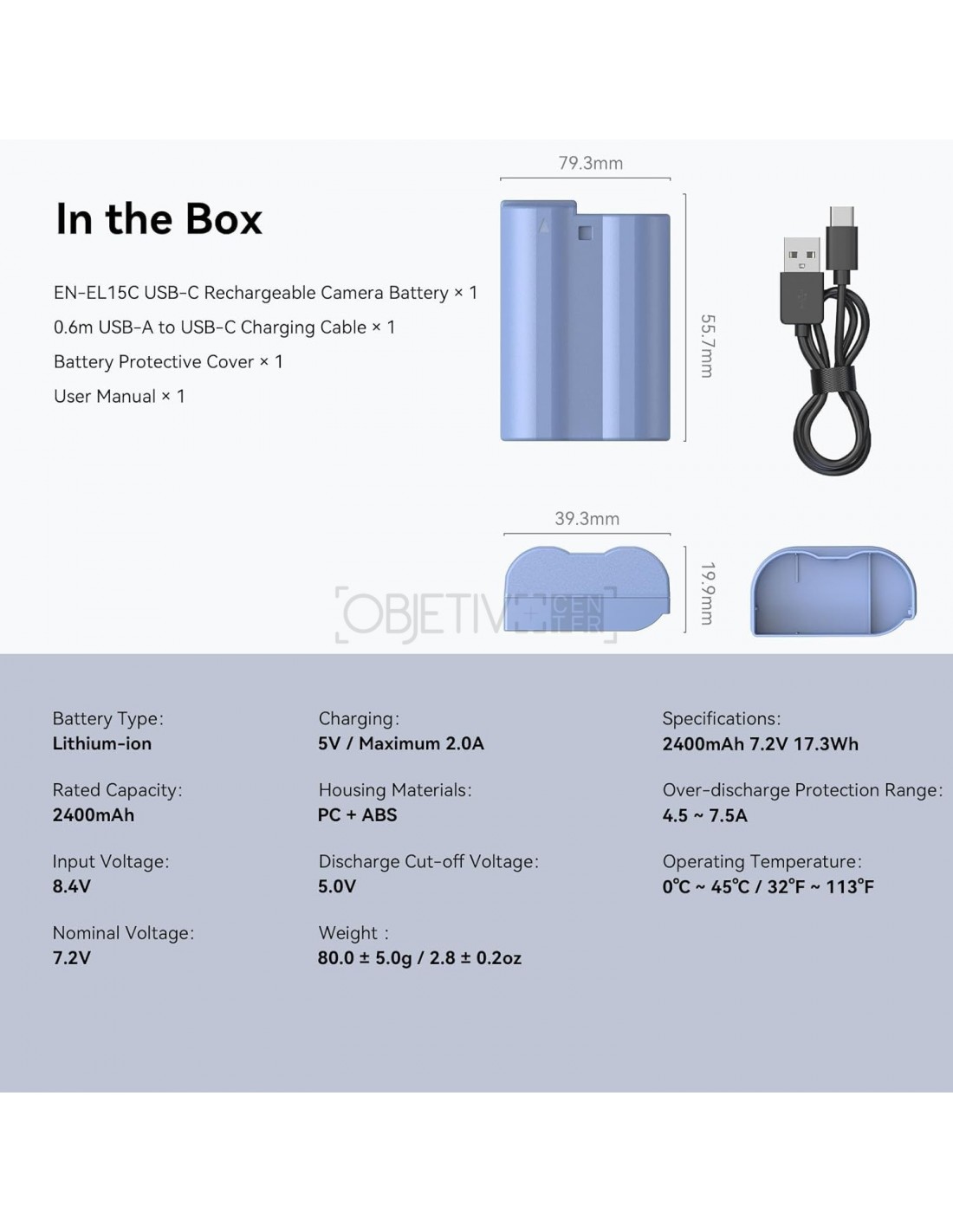 Capacidad de Batería Suficiente: 2400mAh, 7,2 V, 17,28 Wh, la potente batería compatible con EN-EL15C 4332 será un reemplazo profesional para la batería compatible con Nikon EN-EL15C.