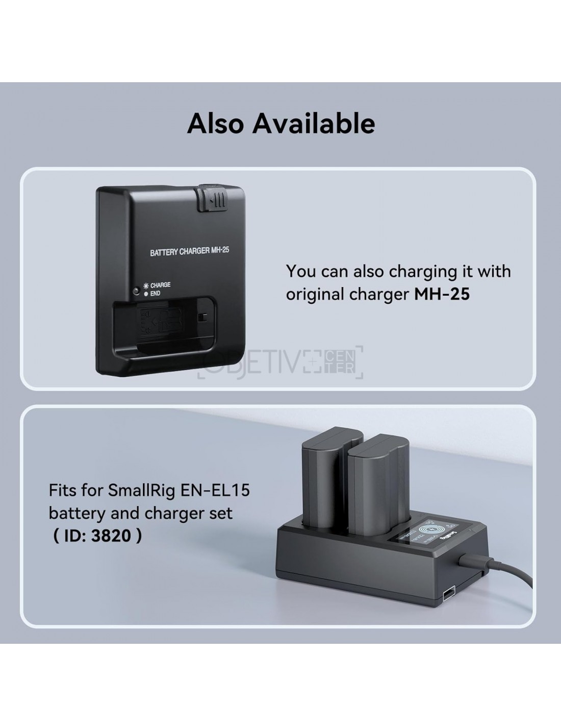 Capacidad de Batería Suficiente: 2400mAh, 7,2 V, 17,28 Wh, la potente batería compatible con EN-EL15C 4332 será un reemplazo profesional para la batería compatible con Nikon EN-EL15C. Batería de litio incorporada de alta calidad con batería de larga duración para proyectos de fotografía y producción de vídeo prolongados sin efecto memoria.