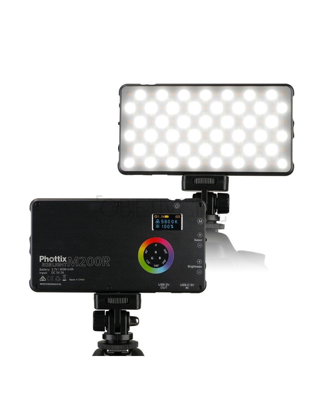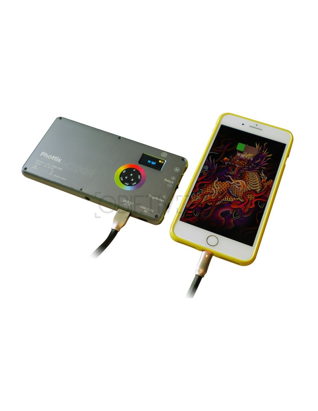 La Antorcha Led Mobile M200R RGB LIGHT Phottix M200R es una fuente de luz compacta y potente para fotografía fija y de video. Utiliza lo último en tecnología LED sin parpadeo, lo que la hace más eficiente y duradera. Las características de la luz RGB Phottix M200R: