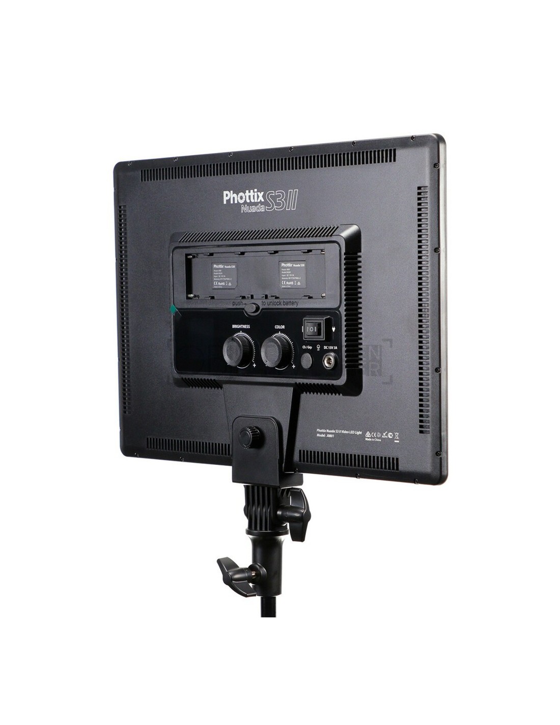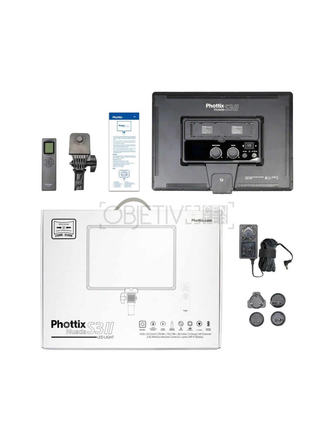 Para mayor comodidad, el Phottix Nuada S3 funciona con baterías de la serie NP compatibles con Sony e incluye un adaptador de alimentación de CA.