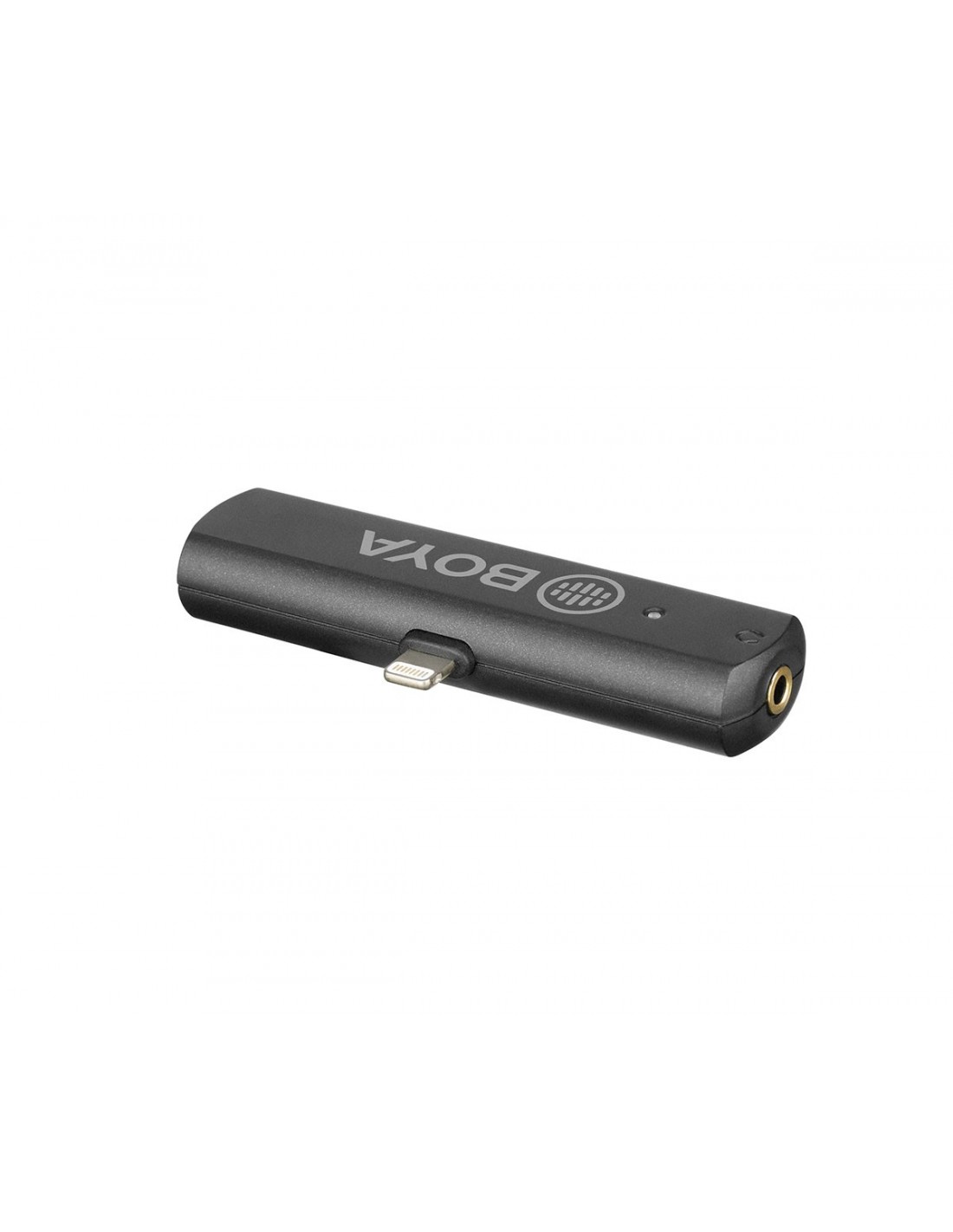 y un receptor en miniatura con un conector Lightning (BY-WM4 PRO RXD), y dos Micrófonos lavalier omnidireccionales.