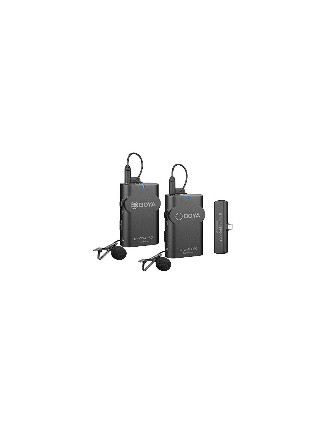 BOYA BY-WM4 PRO-K4 es un sistema de micrófono inalámbrico de 2.4GHz , especialmente diseñado para dispositivos iOS Lightning, viene con dos transmisores de petaca (TX4 Pro)