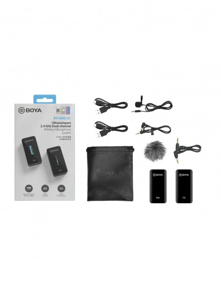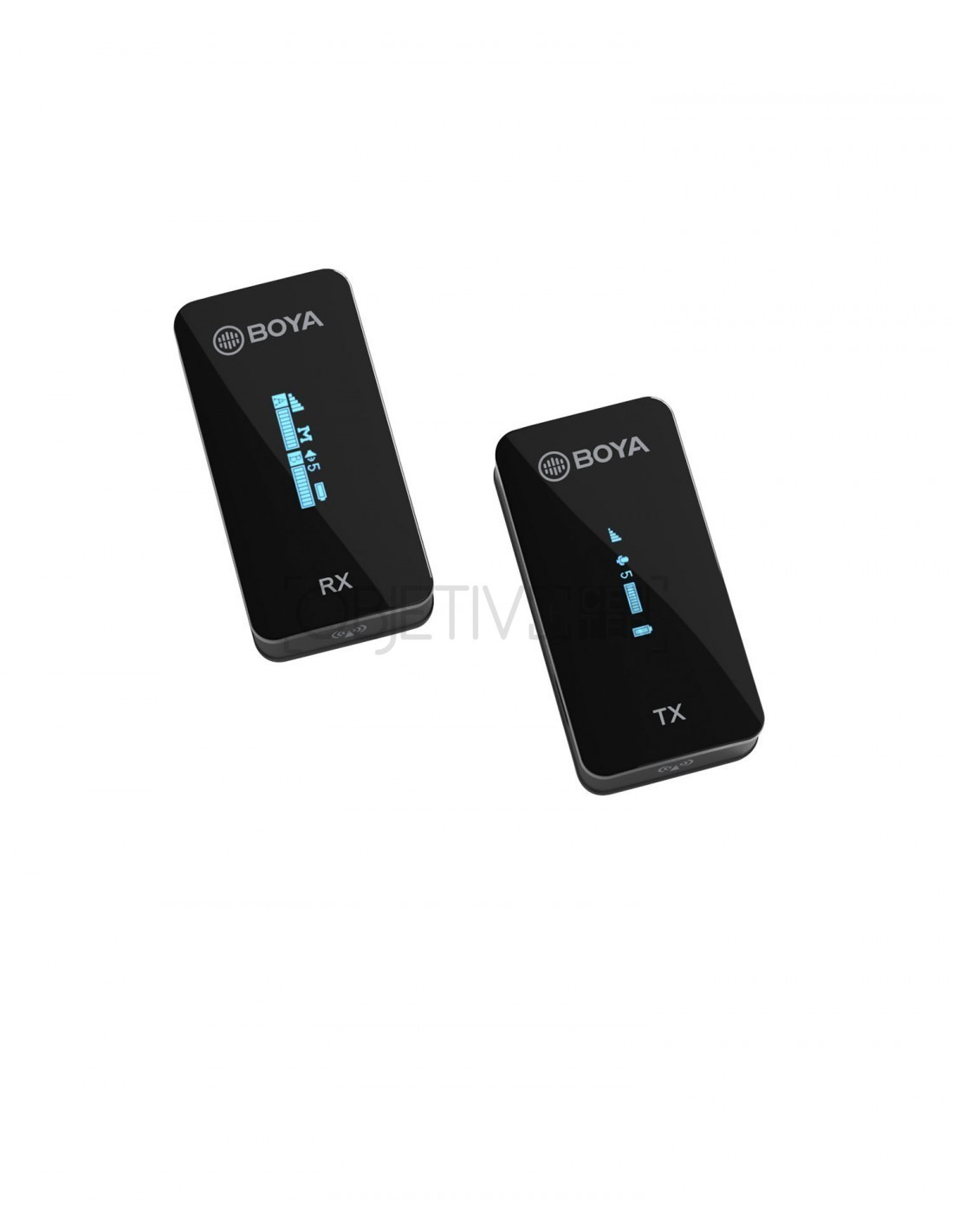 Sistema de micrófono inalámbrico ultracompacto de Doble Canal con Pantalla OLED Monitoreo en Tiempo Real para vlogging, transmisión en Vivo, entrevista para cámara DSLR y Smartphone. Captura y transmisión de audio profesional: con una cápsula de alta calidad y un circuito de procesamiento de señal con una relación de señal a ruido de más de 84 dB y una tasa de distorsión inferior al 0.1%, el BY-XM6 captura y brinda alta calidad, claridad y bajo ruido de audio. Alcance: 100 m. Duración: hasta 7 horas. Carga: Puerto USB-C, 24, GHz
