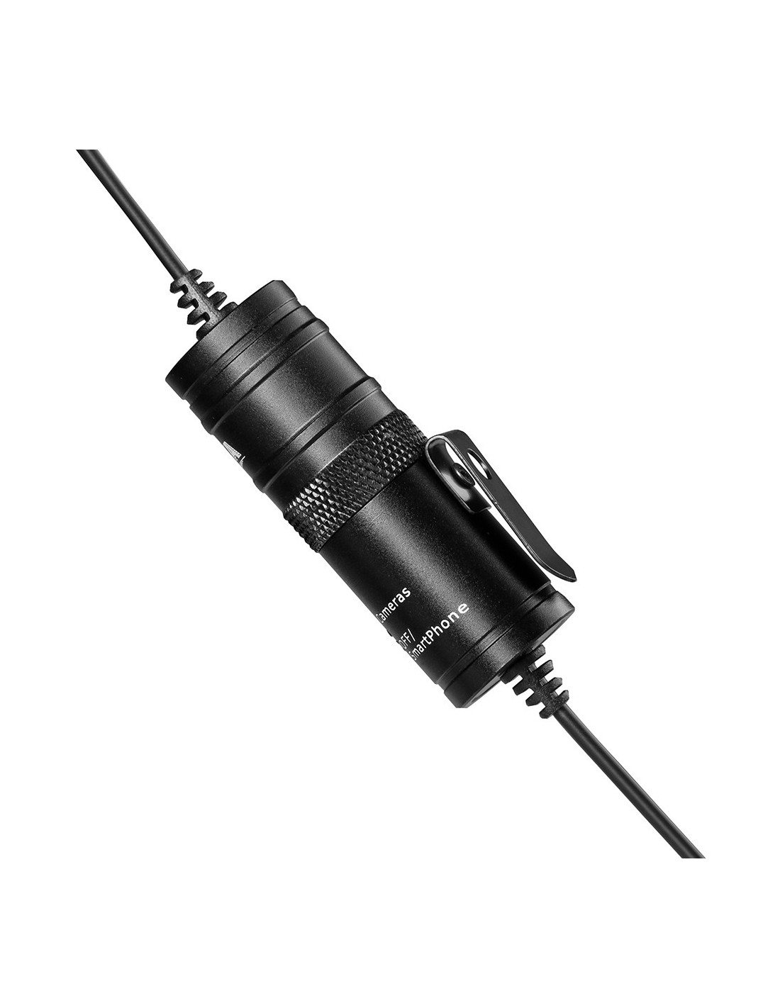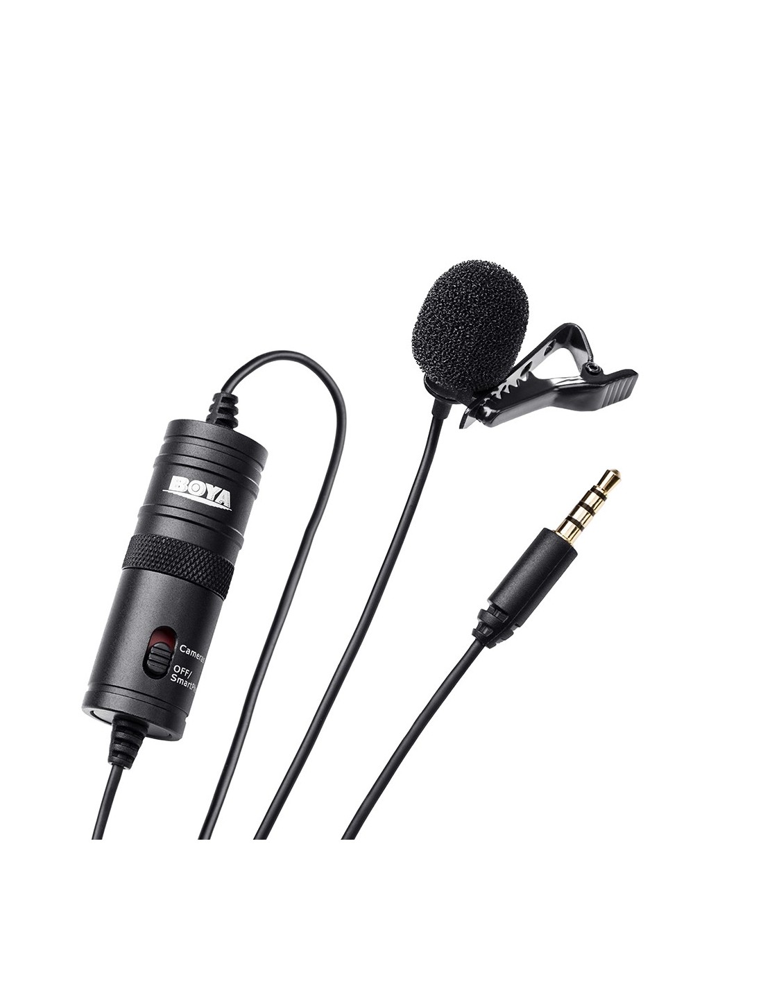 Micrófono de solapa dinámico condensador, con patrón polar omnidireccional con cobertura de 360°. Pensado y diseñado para transmitir un sonido nítido y uniforme con calidad profesional, el micrófono de solapa BOYA BY-M1 es cómodo, fácil y rápido de usar, y tan ligero que te olvidarás de que lo llevas puesto.