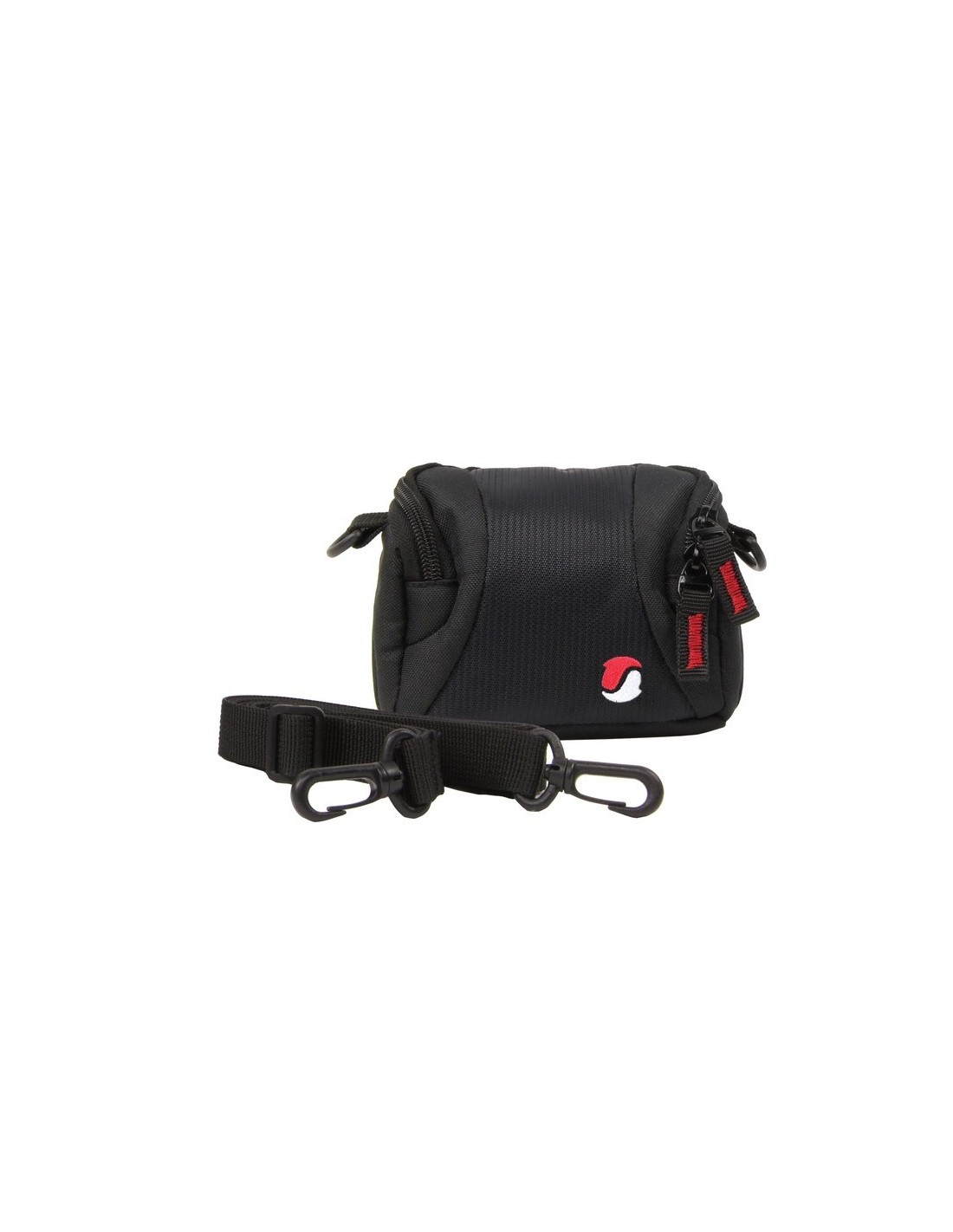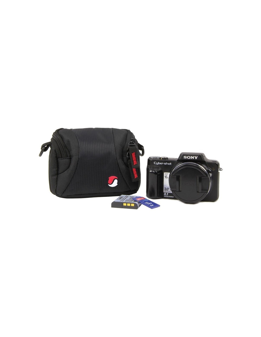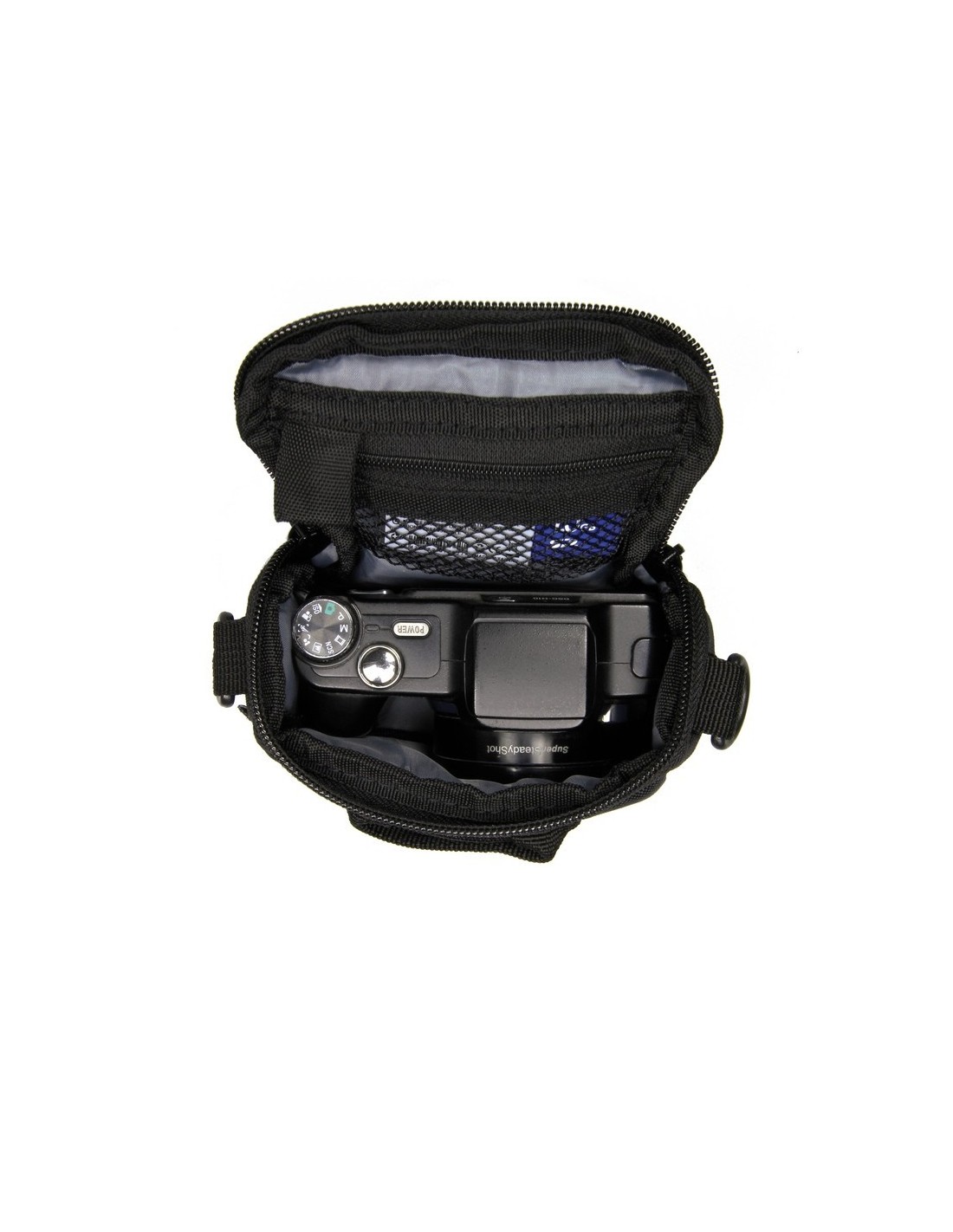 La pequeña bolsa de hombro con tejido repelente al agua pensada para cámaras compactas.
