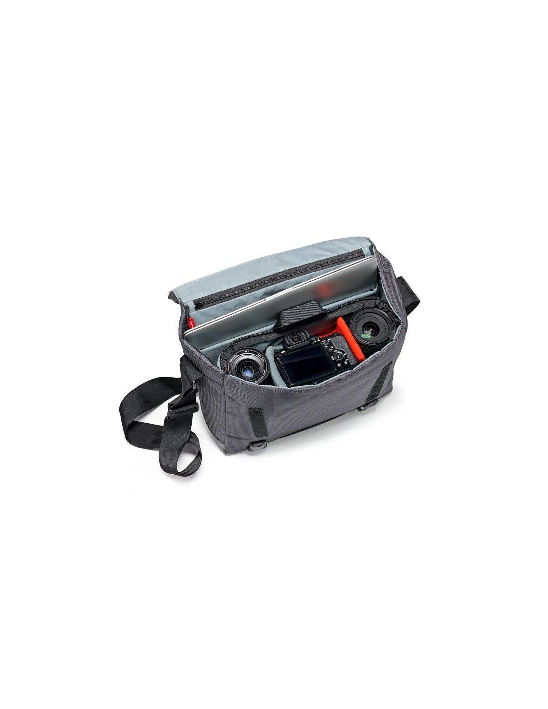 La bolsa para cámara y portátil Manhattan Messenger Speedy 10 de Manfrotto es perfecta para viajeros de ciudad y personas que están siempre en movimiento con su kit fotográfico.