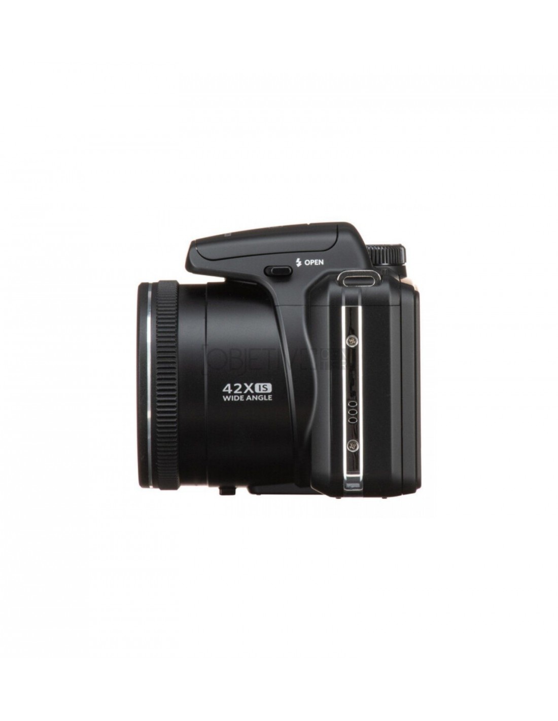El zoom expansivo cubre un rango de longitud focal equivalente de 24-1008 mm para trabajar con sujetos tanto cercanos como lejanos, y la estabilización de imagen óptica ayuda a minimizar la apariencia del movimiento de la cámara para lograr tomas manuales más nítidas. La cámara tiene un monitor LCD trasero de 3,0" y 460 000 puntos, y el flash emergente incorporado ayuda cuando dispara en entornos con poca luz.