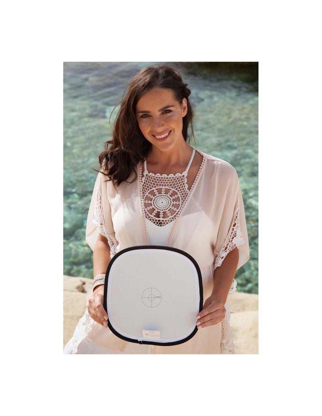 XpoBalance: la herramienta perfecta para ser usada antes y después de la captura, permite efectuar balance de blancos, bracketing de exposición y el balance del histograma. Disponible en tamaño de 15 cm. Blanco al 90%, negro y gris neutro al 18% por una cara y gris neutro al 18%, gris + 1 stop y gris -1 stop por la otra.