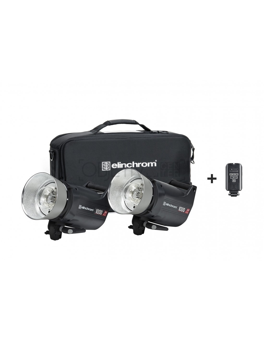 Incluye: 2 x flash Elinchrom ELC Pro HD 1000 con lámpara de modelado de 300 Ws, capuchón de protección, cable de red, 2 capuchón de pyrex transparente, 1 x transmisor EL-Skyport Plus, 1 x maleta transporte.