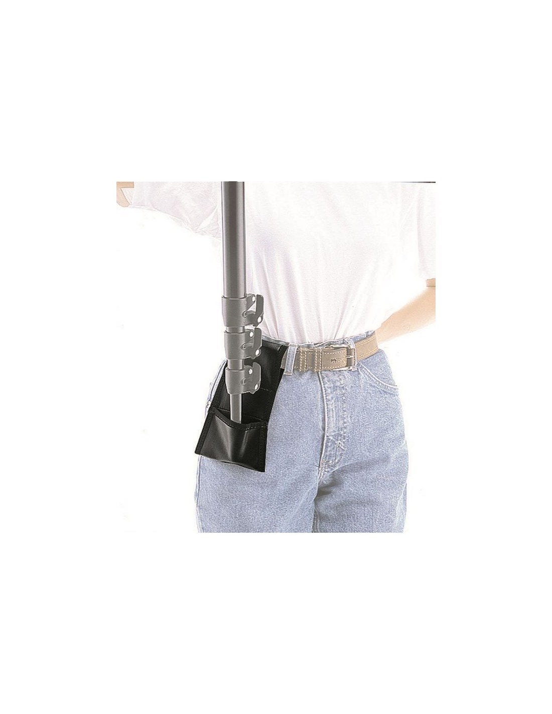 Llevado con un cinturón, este accesorio nos ofrece apoyo para la base de un monopie.