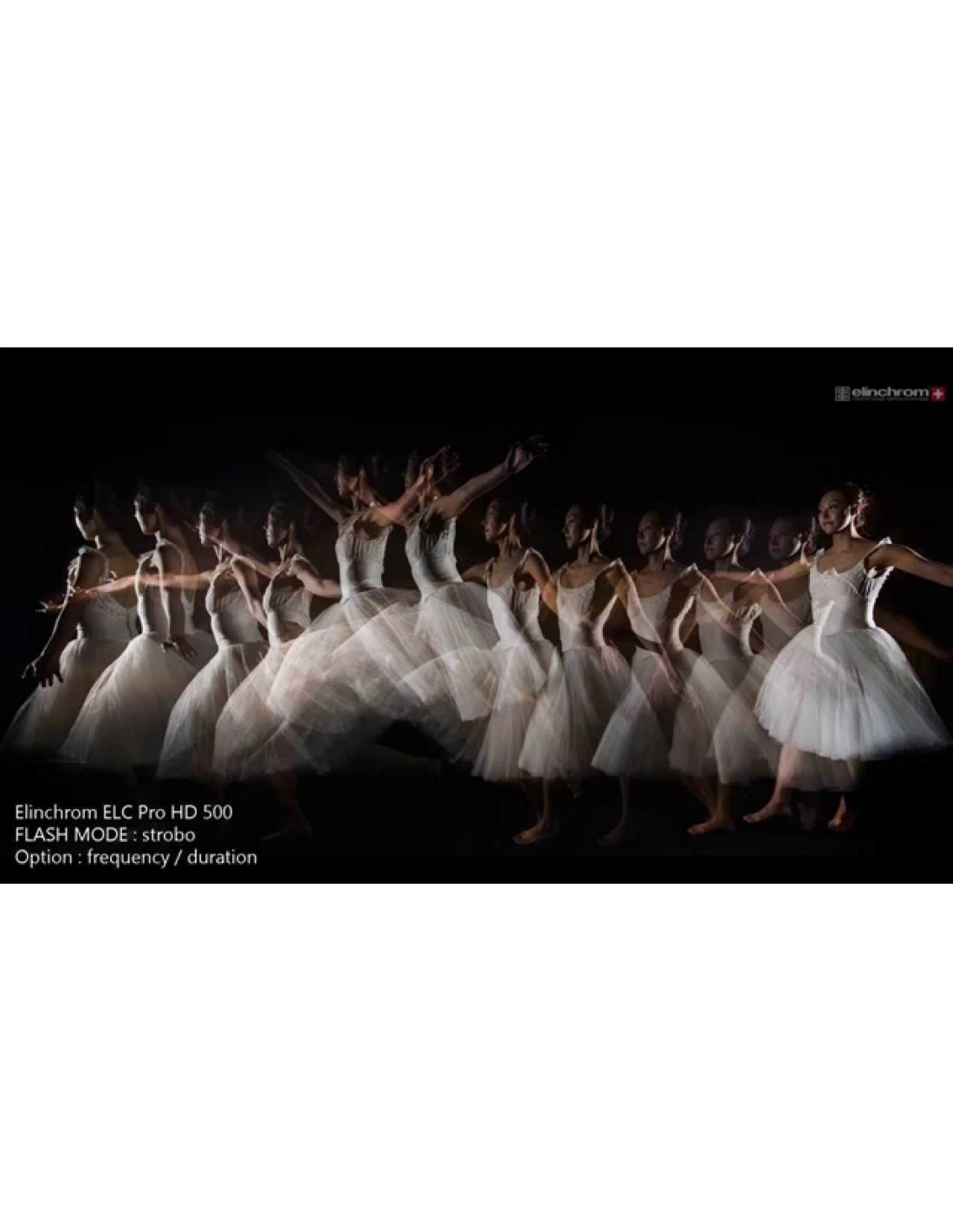 El Flash ELC PRO HD 500 es compatible con todo el sistema de modificadores de luz Elinchrom secuencia: Dispara el flash ELC de modo continuo o en ráfagas para usar la alta velocidad de disparo de la cámara, retardado (Delay): Sincroniza a la primera, a la segunda cortinilla y en cualquier lugar en medio de las dos.
