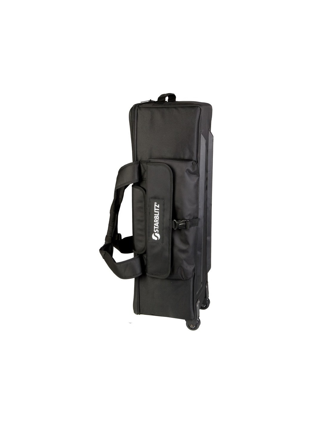 Pero éste conjunto no estaría completo sin una bolsa con ruedas de transporte y protección donde guardar nuestro Kit, la bolsa de transporte con ruedas y un gran asa es cómoda y muy amplia y además protegerá el Kit Flash de Estudio de Starblitz de la lluvia y los golpes.