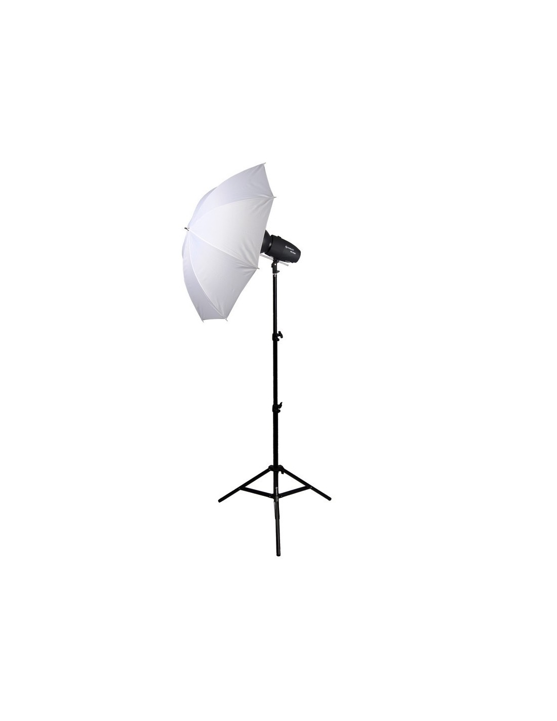 El Kit también incluye un paraguas difusor blanco translúcido imprescindible en fotografía de retrato o moda, también muy utilizado en reportaje social.