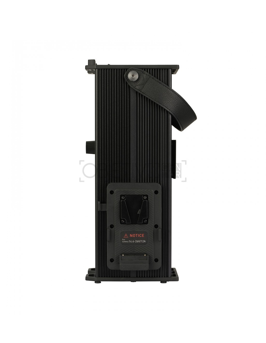 Consumo de energía: 800 W, Potencia Led total 800 w. x 2, iluminancia (con reflector estándar): 3m-10200lux / 948fc, 5m-3945lux / 366fc, 7m-2211lux / 205 fc, Temperatura de color: 5600 K, CRI / TLCI: 95/96, fuente de alimentación: DC48V / 16,67 A, 100-240V AC, admite baterías V-Mount (no incluidas).