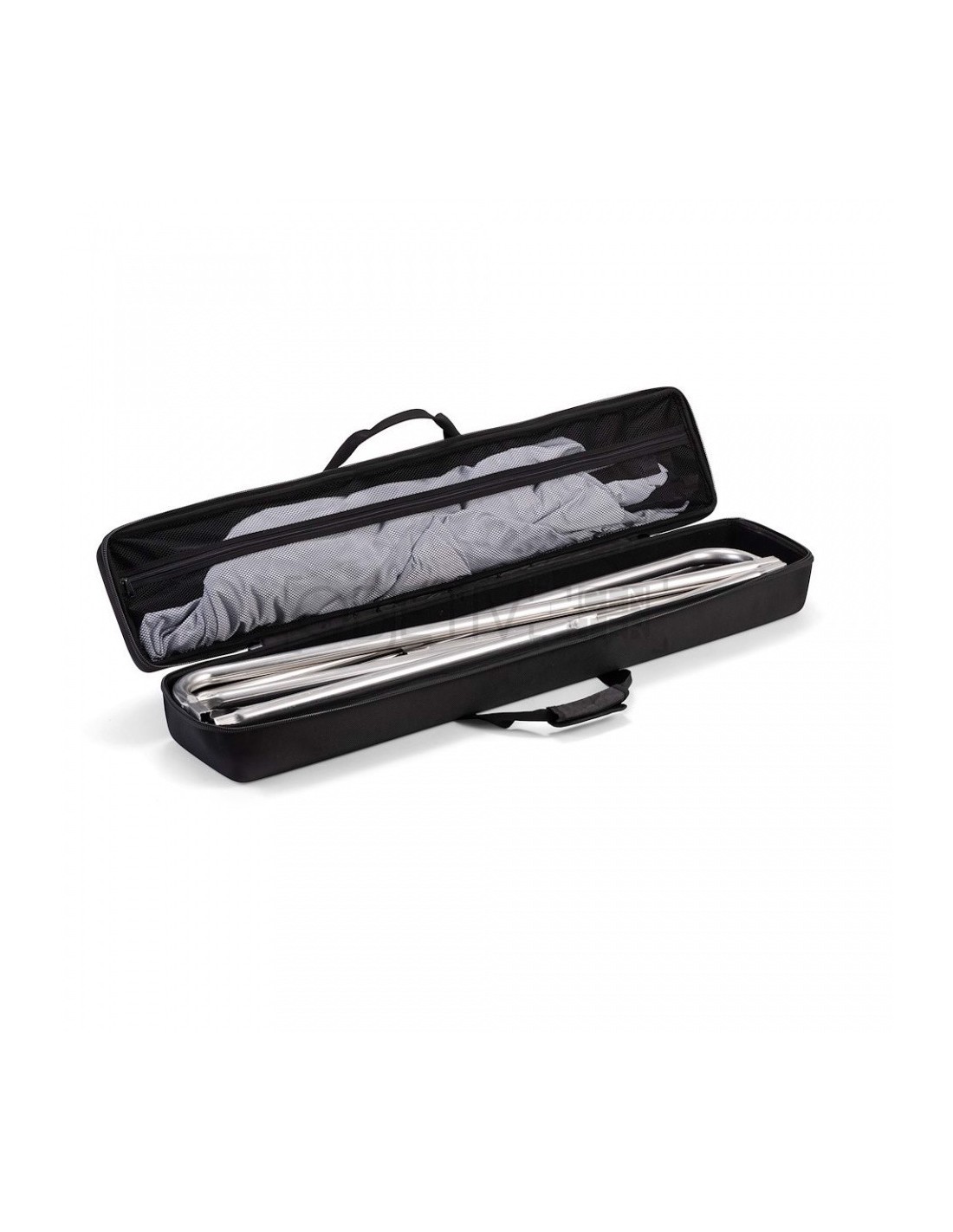 Se monta en pocos minutos y el bastidor de aluminio EzyFrame con su cubierta se almacena y transporta en un pequeño maletín rígido que mide solo 103x19x14 cm.