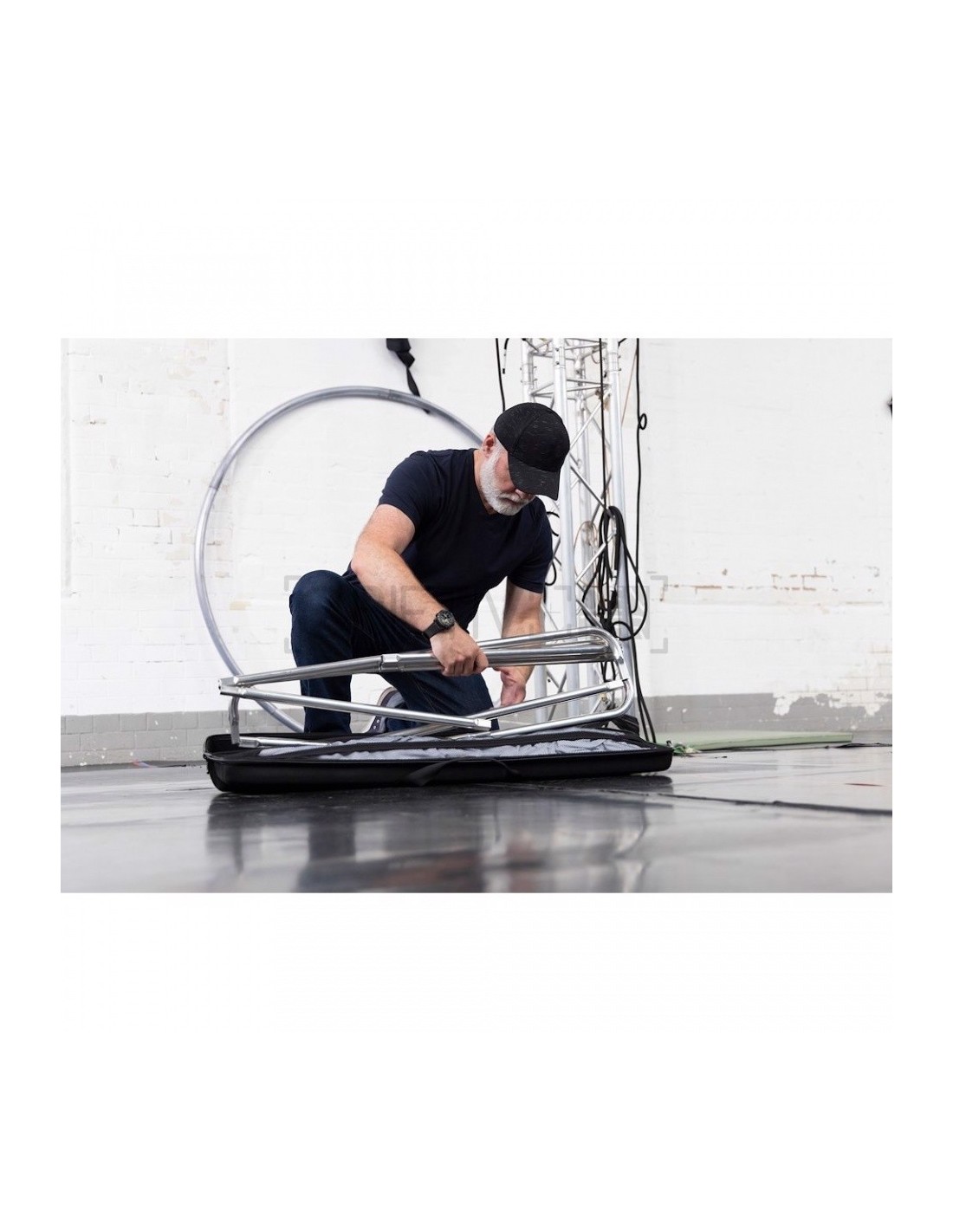 Es perfecta para retratos de familia, posos de acción animadas y fotografía de moda comercial. Incorpora el bastidor de aluminio al que se abrocha la cubierta, que se utiliza en los paneles Skylite, fondos Panoramic, y las soluciones StudioLink Chroma Key.
