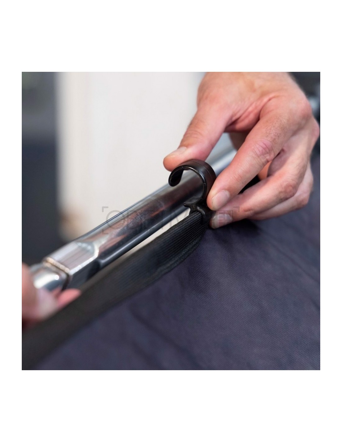 Se monta en pocos minutos y el bastidor de aluminio EzyFrame con su cubierta se almacena y transporta en un pequeño maletín rígido que mide solo 103x19x14 cm.
