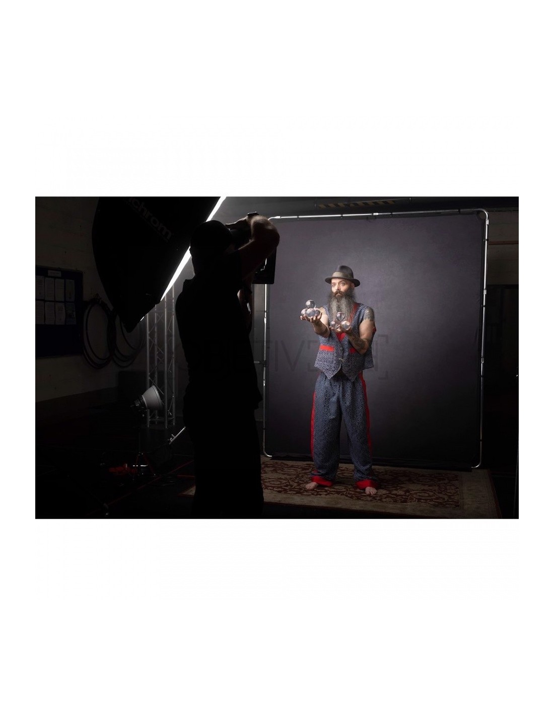 Es perfecta para retratos de familia, posos de acción animadas y fotografía de moda comercial. Incorpora el bastidor de aluminio al que se abrocha la cubierta, que se utiliza en los paneles Skylite, fondos Panoramic, y las soluciones StudioLink Chroma Key.