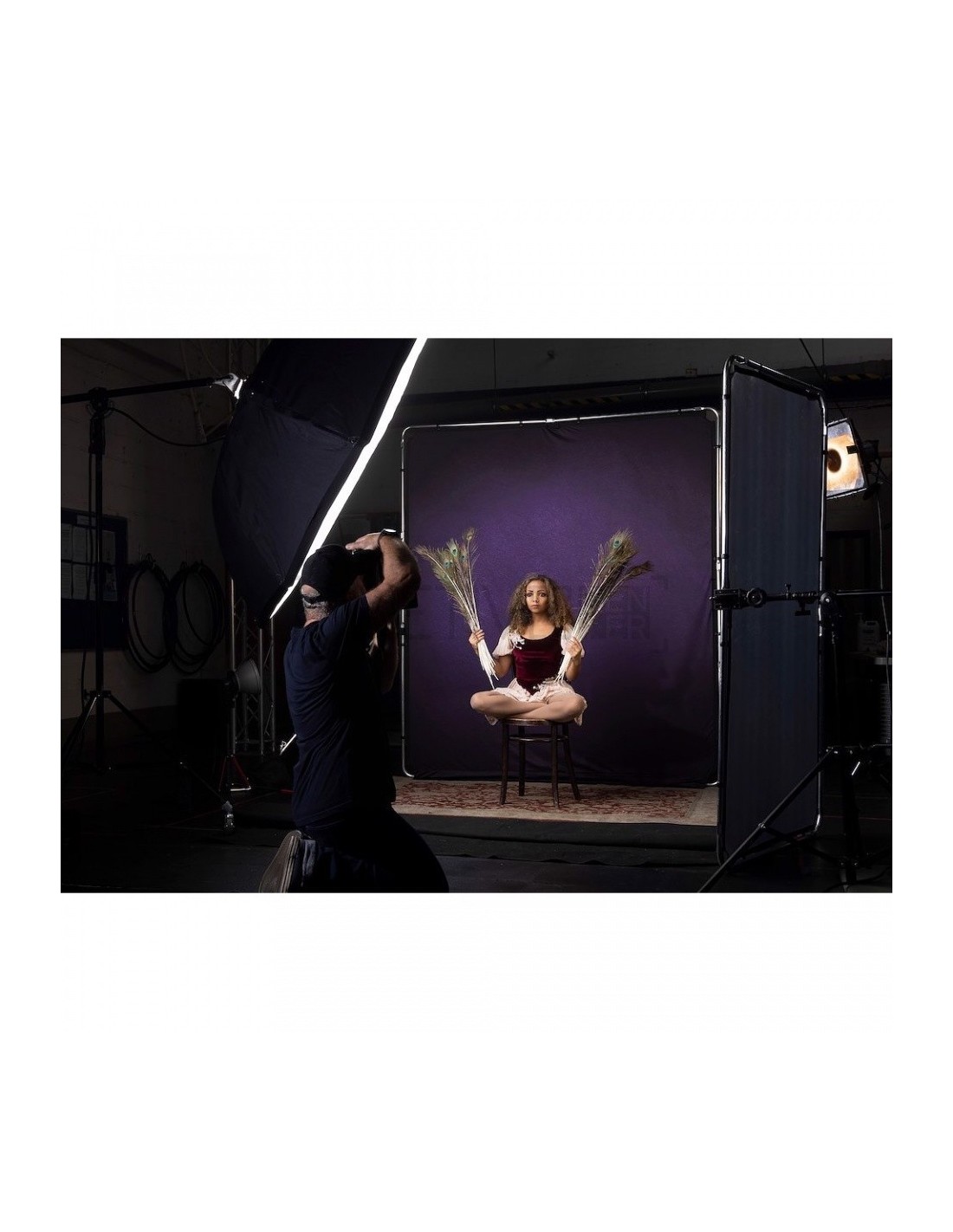 Es perfecta para retratos de familia, posos de acción animadas y fotografía de moda comercial. Incorpora el bastidor de aluminio al que se abrocha la cubierta, que se utiliza en los paneles Skylite, fondos Panoramic, y las soluciones StudioLink Chroma Key.