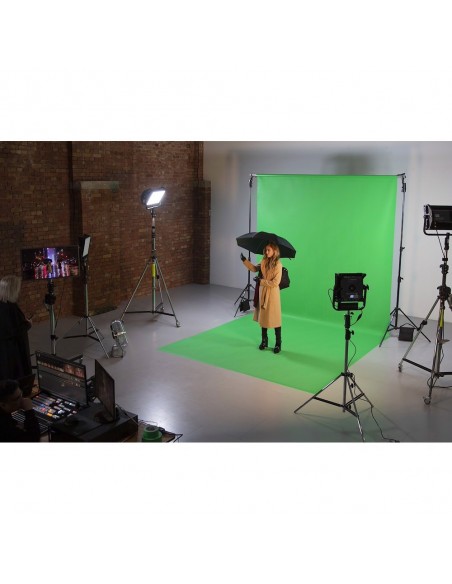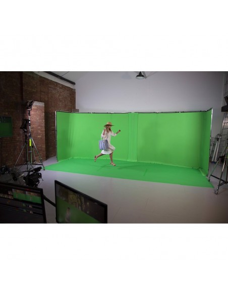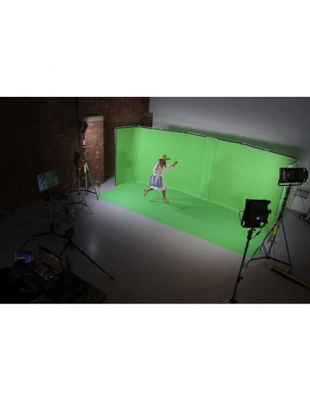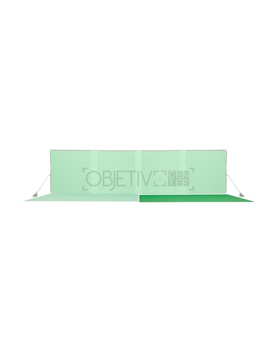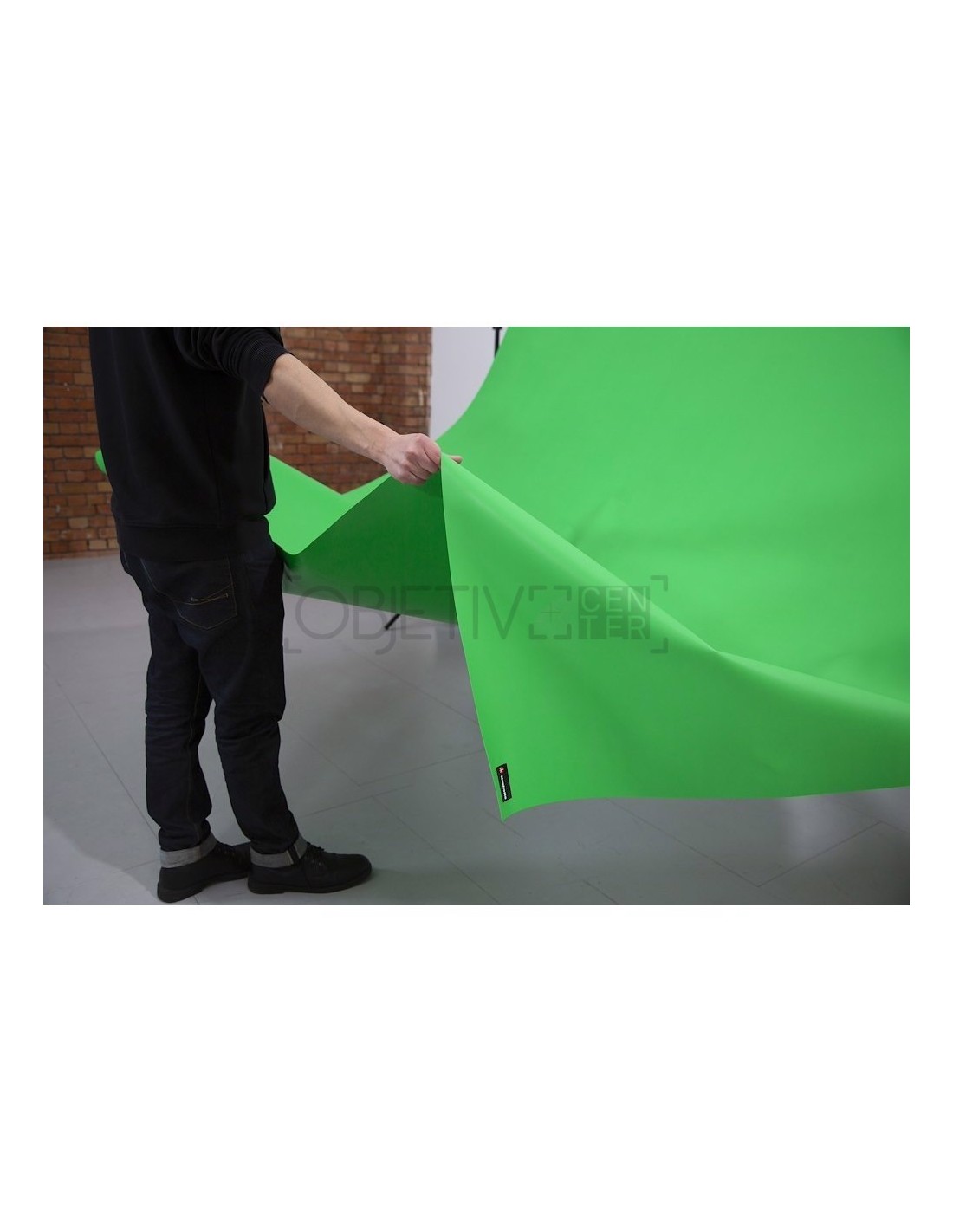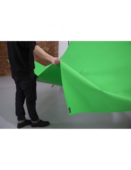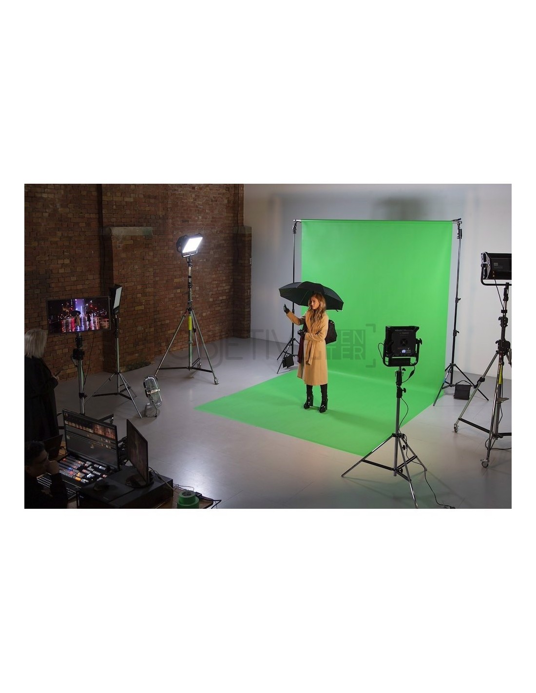 El fondo/suelo de vinilo de 2,75 m x 6 m Croma Key Verde puede utilizarse como fondo con un sistema de soporte gracias a su núcleo de aluminio incluido, o bien como solución de suelo para nuestra amplia gama de fondos.