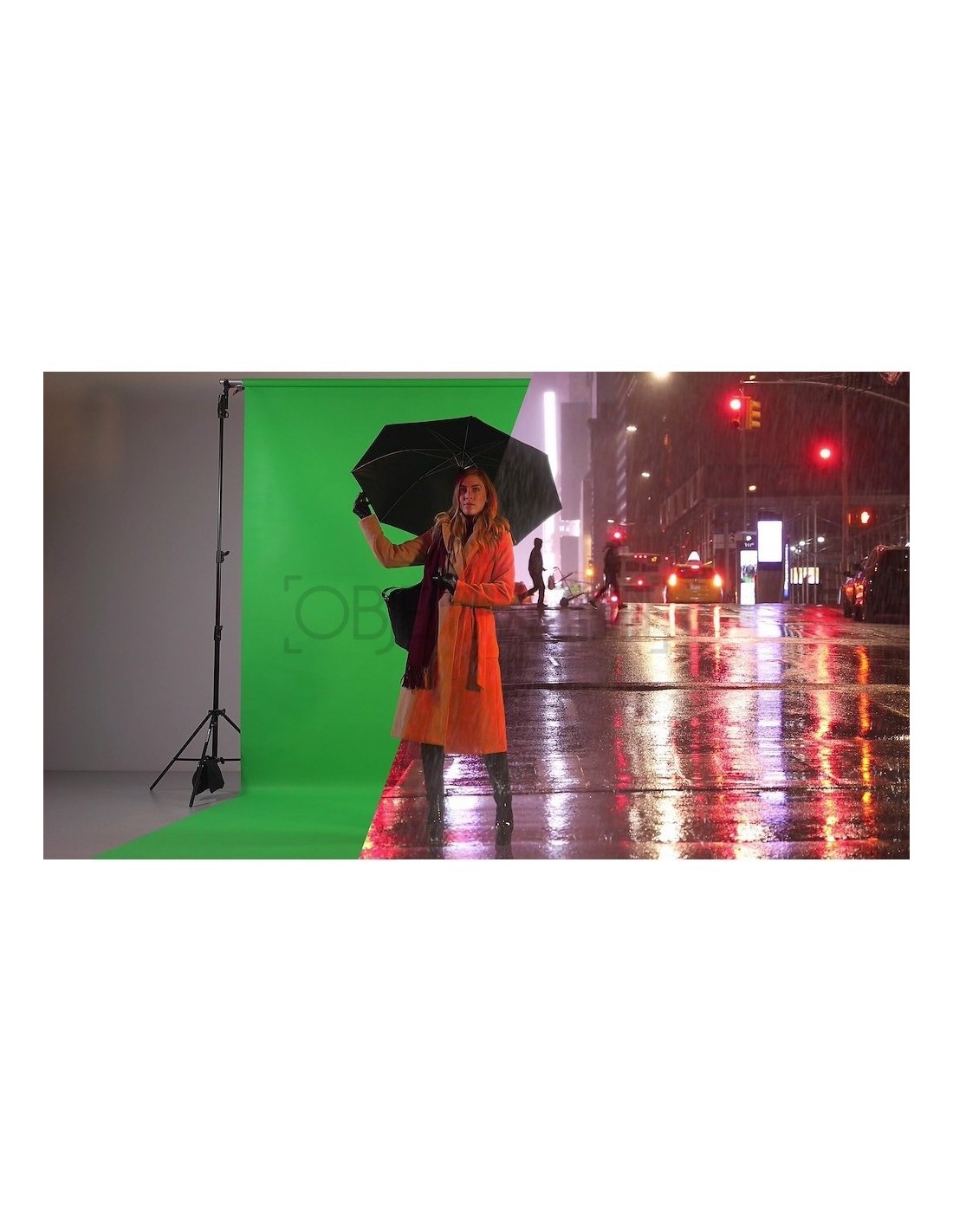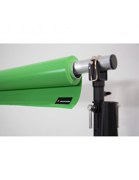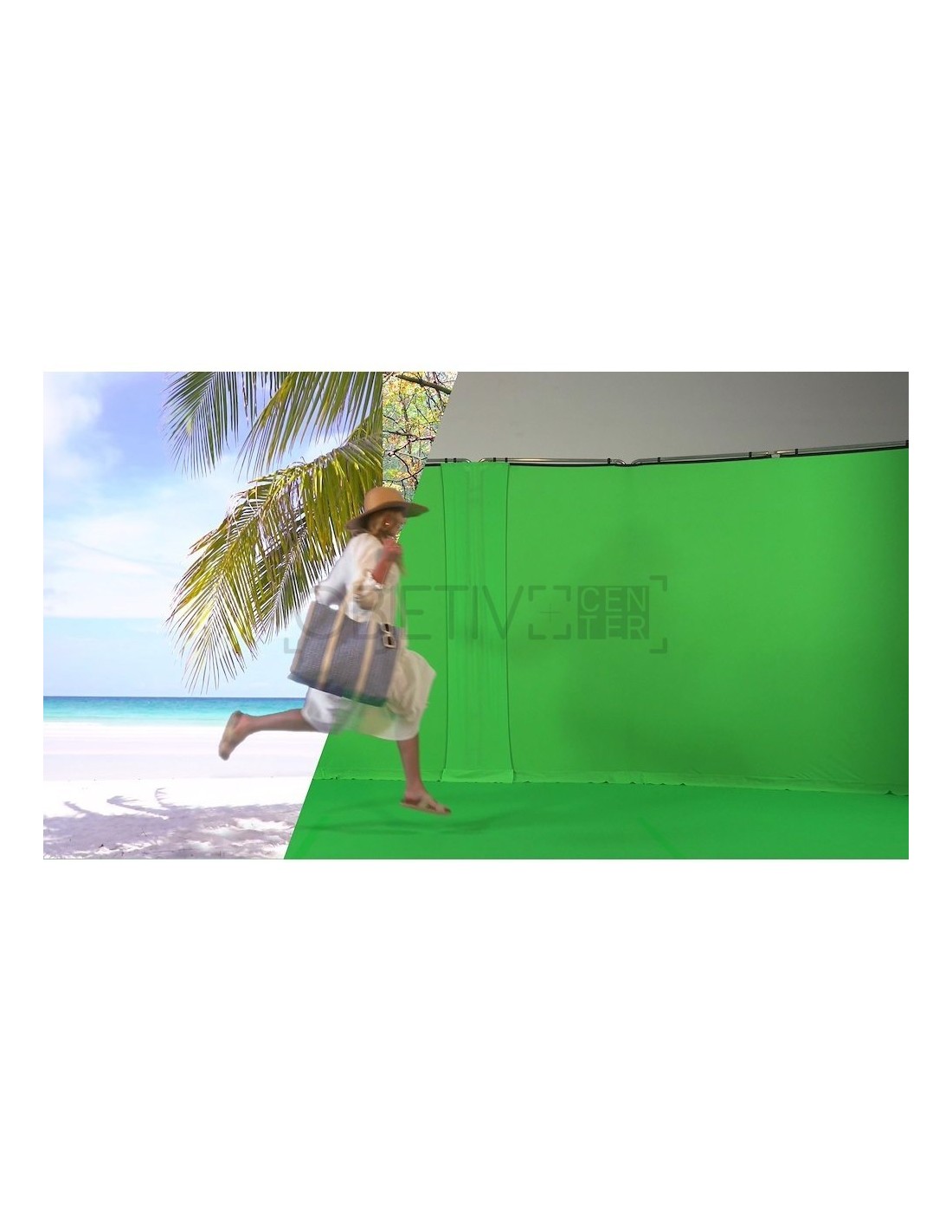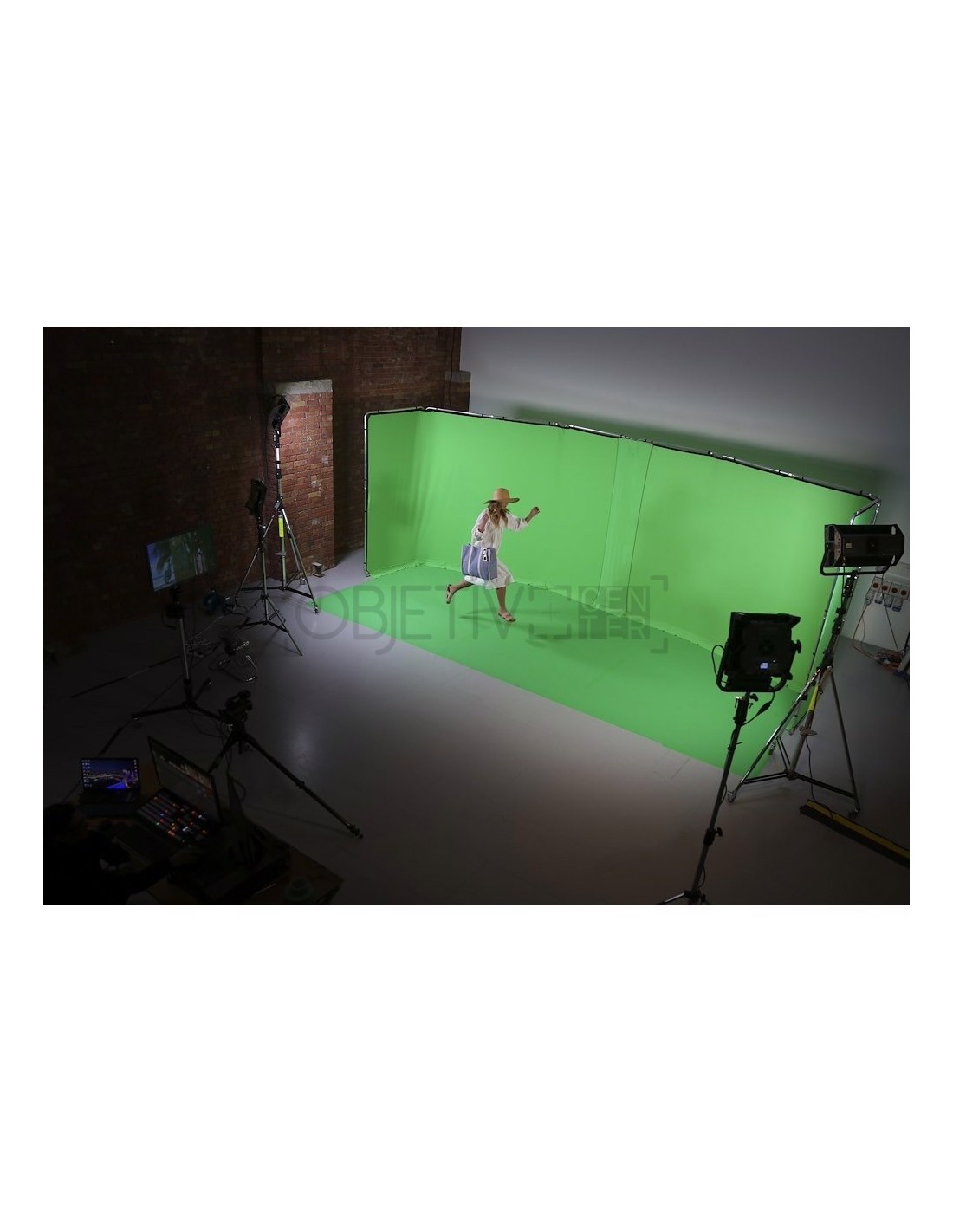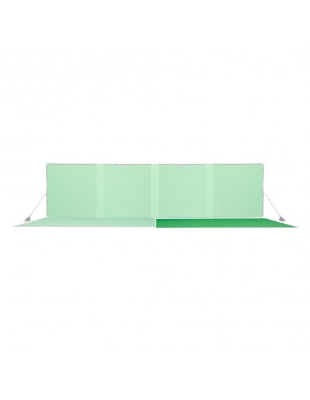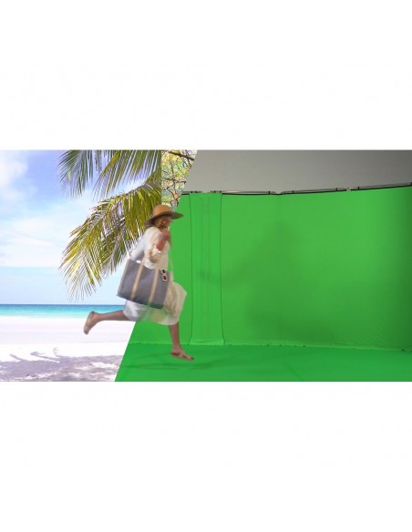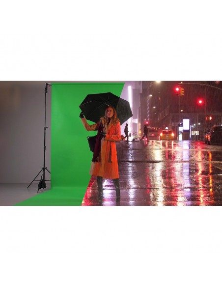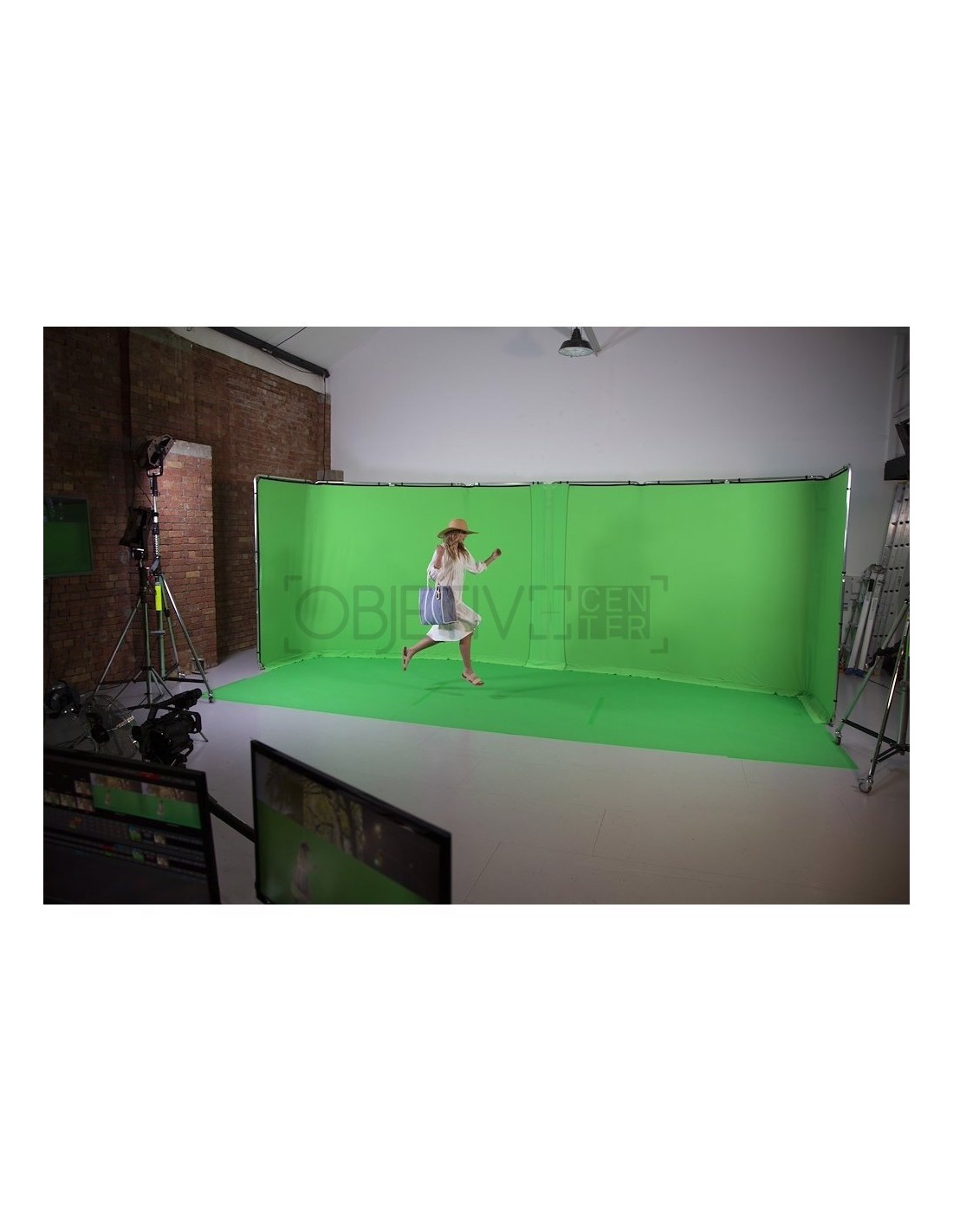 El fondo/suelo de vinilo de 2,75 m x 6 m Croma Key Verde puede utilizarse como fondo con un sistema de soporte gracias a su núcleo de aluminio incluido, o bien como solución de suelo para nuestra amplia gama de fondos.
