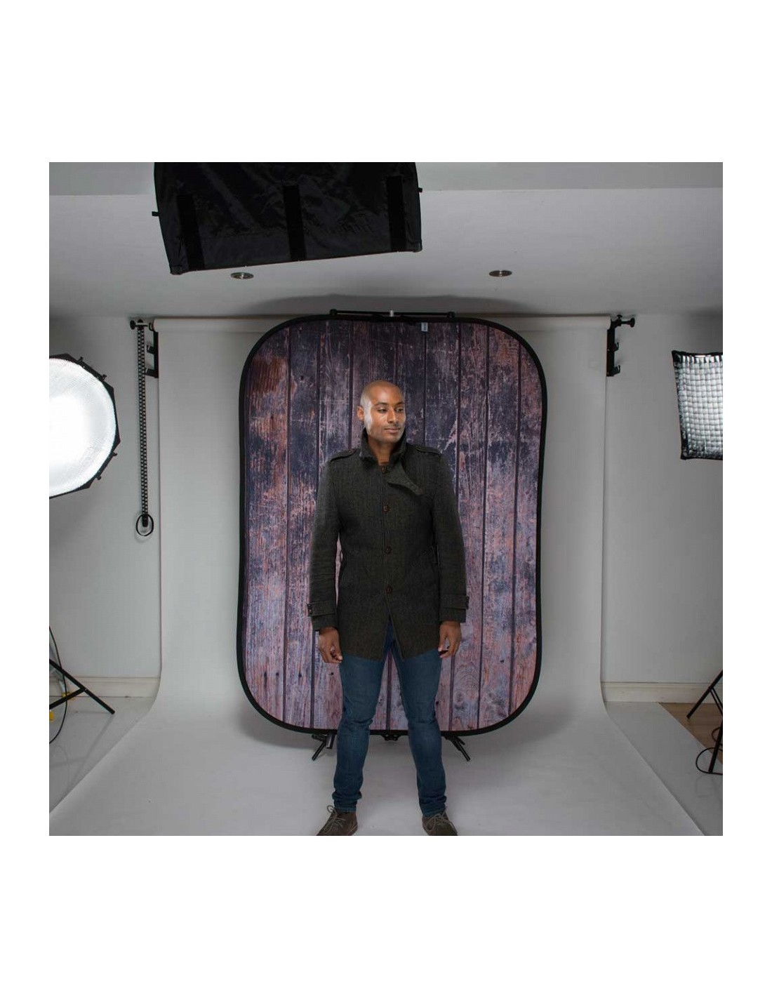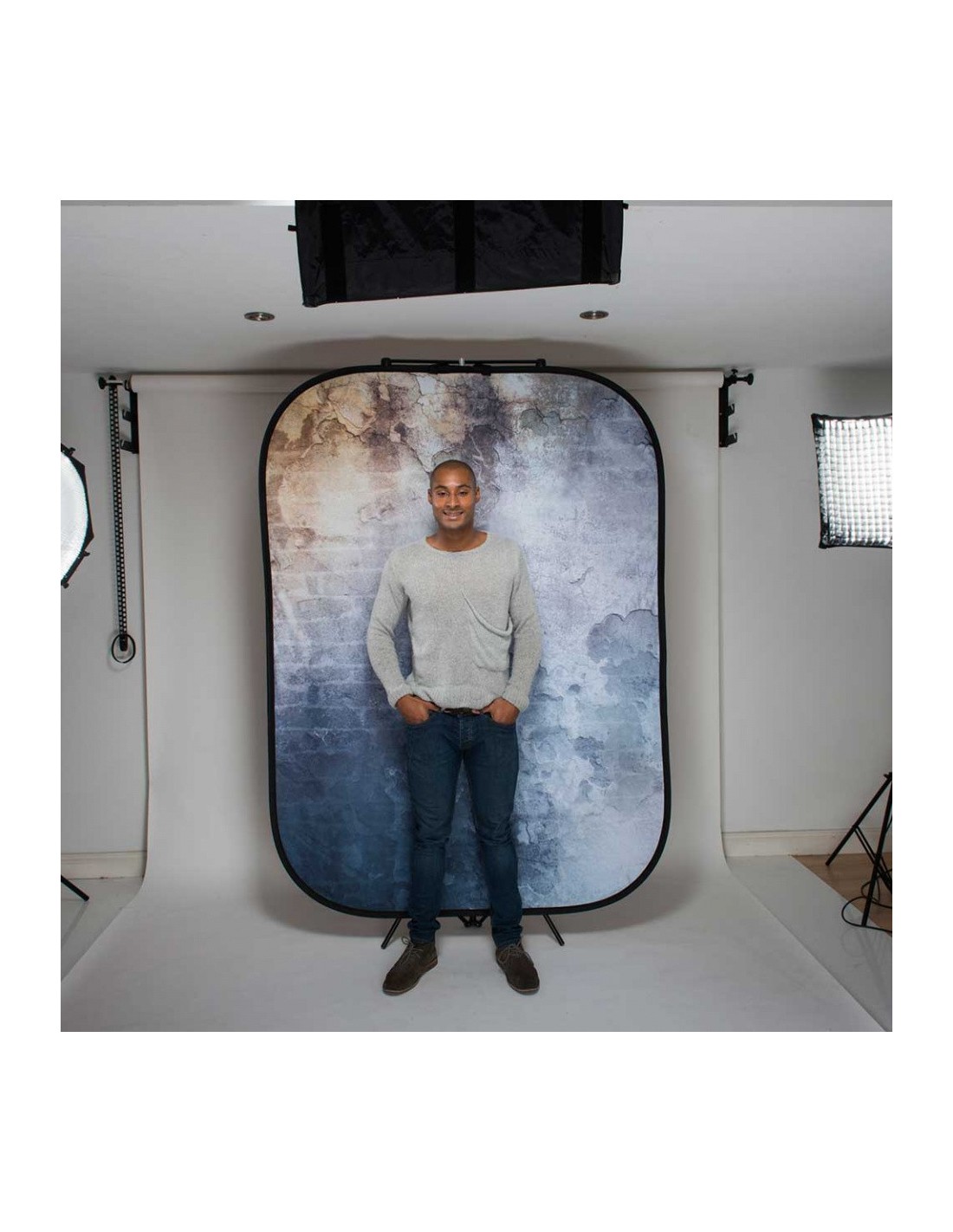 Cada fondo reversible tiene una sensación urbana única y puede agregar rápidamente una nueva dimensión a cualquier retrato sentado.