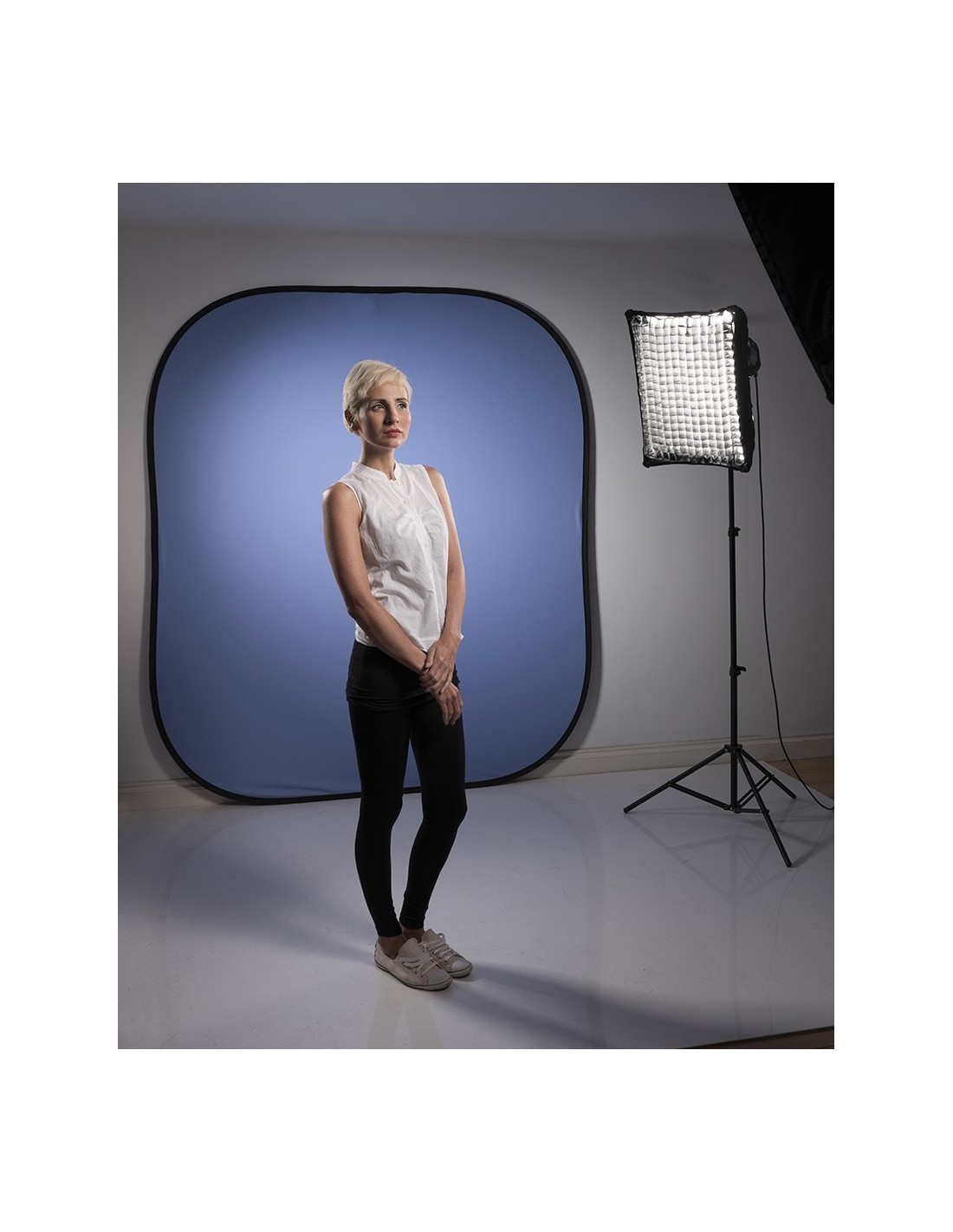 El Fondo Plegable Liso 1.8x2.1 m de Manfrotto permite crear el aspecto atemporal y profesional en cualquier localización. Ya sea que esté en el estudio o en la casa de un cliente.