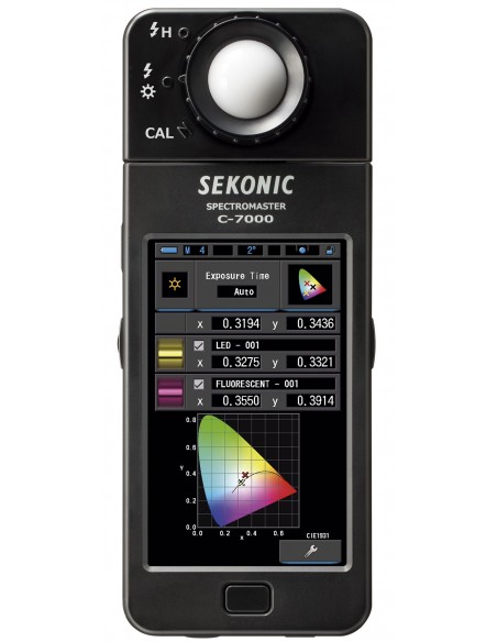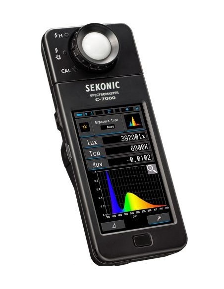 Utilizando el diseño del sensor de imagen lineal CMOS de Sekonic y la gran pantalla táctil a color, el C-7000 puede medir y describir con precisión LED, HMI, fluorescentes, así como luz natural y flash electrónico.