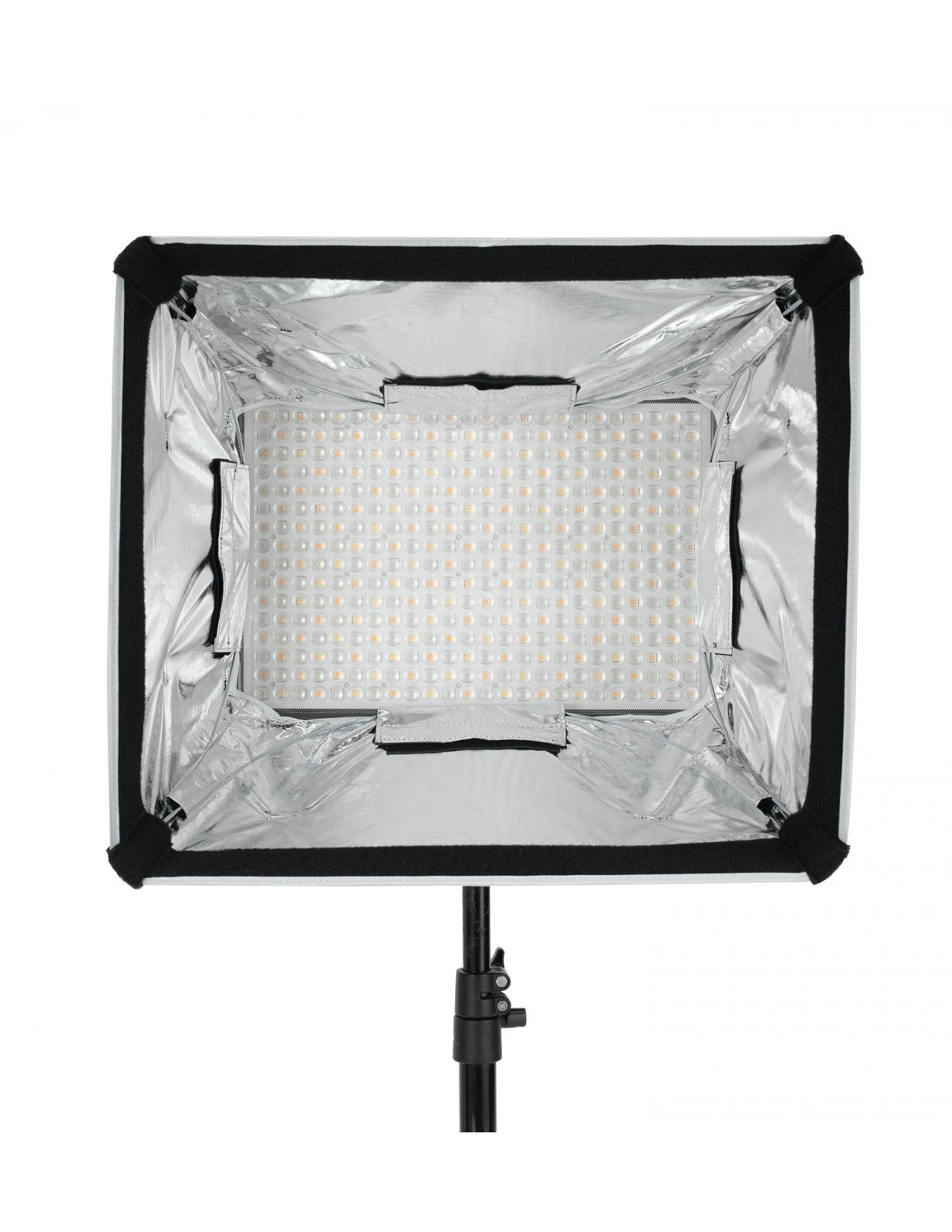 Juego para MixPad II 27C, compuesto por un juego de Aletas para la mejora el control de la iluminación, un softbox para difuminar y suavizar el haz de luz, un panel de abeja o grid para softbox que permite endurecer el haz de luz y una bolsa de transporte y protección para el kit de iluminación.