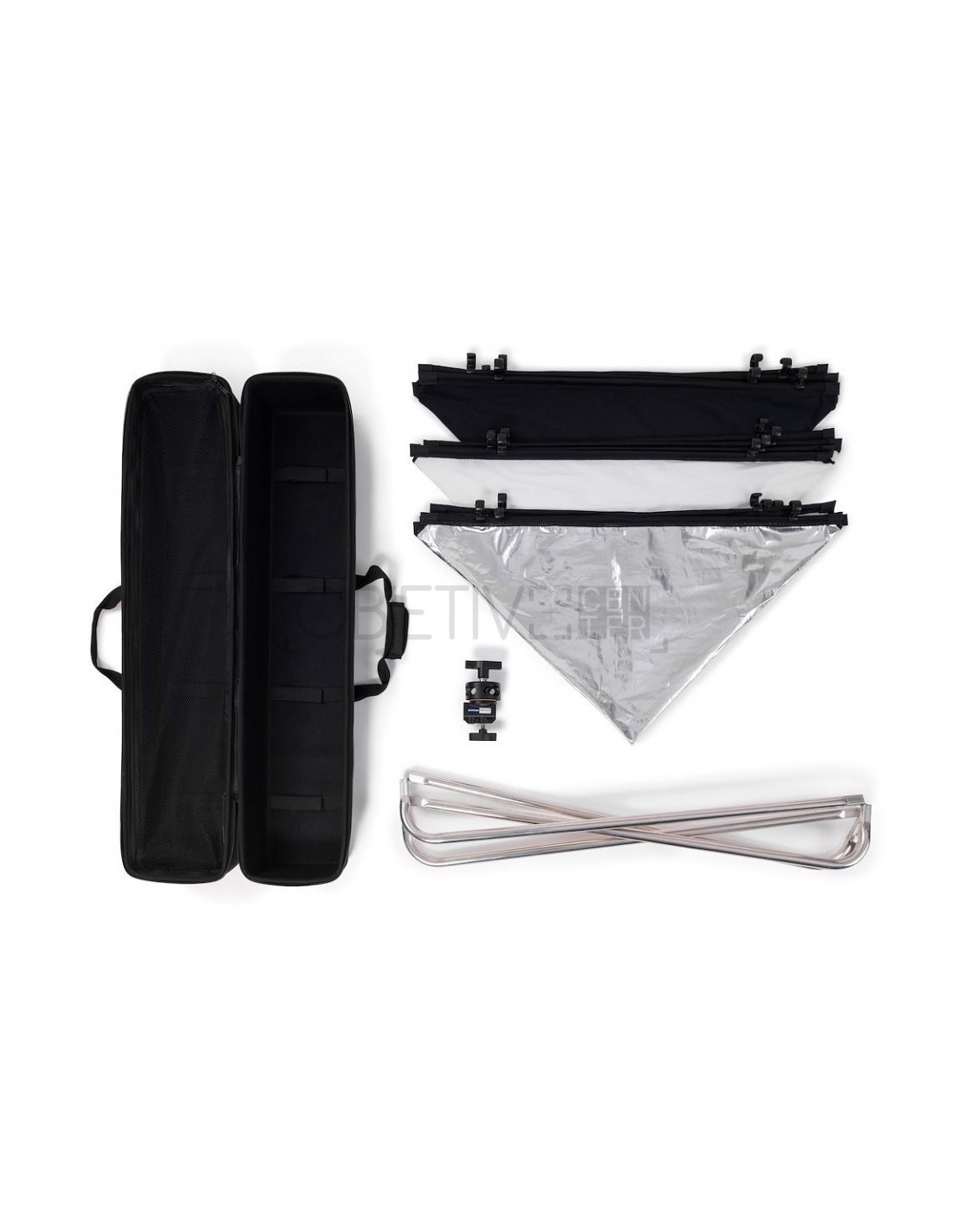 El MFMLLC1101K incluye todos los componentes esenciales que necesita el profesional para el control de la iluminación mediante rebote, difusión o marcado de sus fuentes de luz.