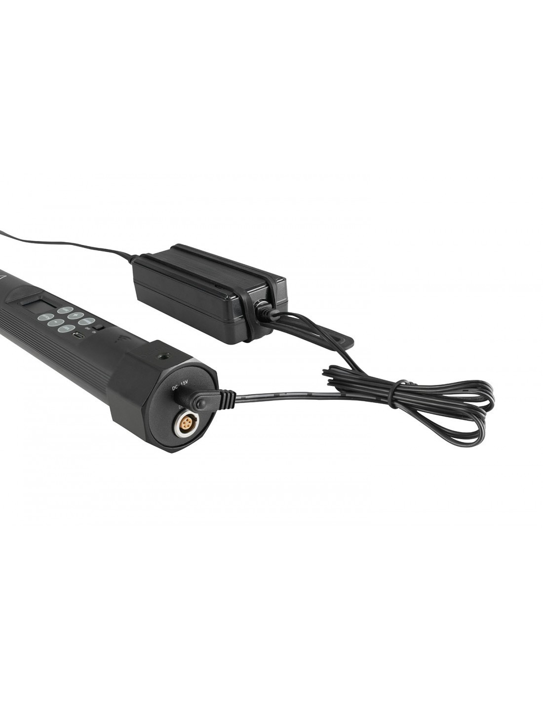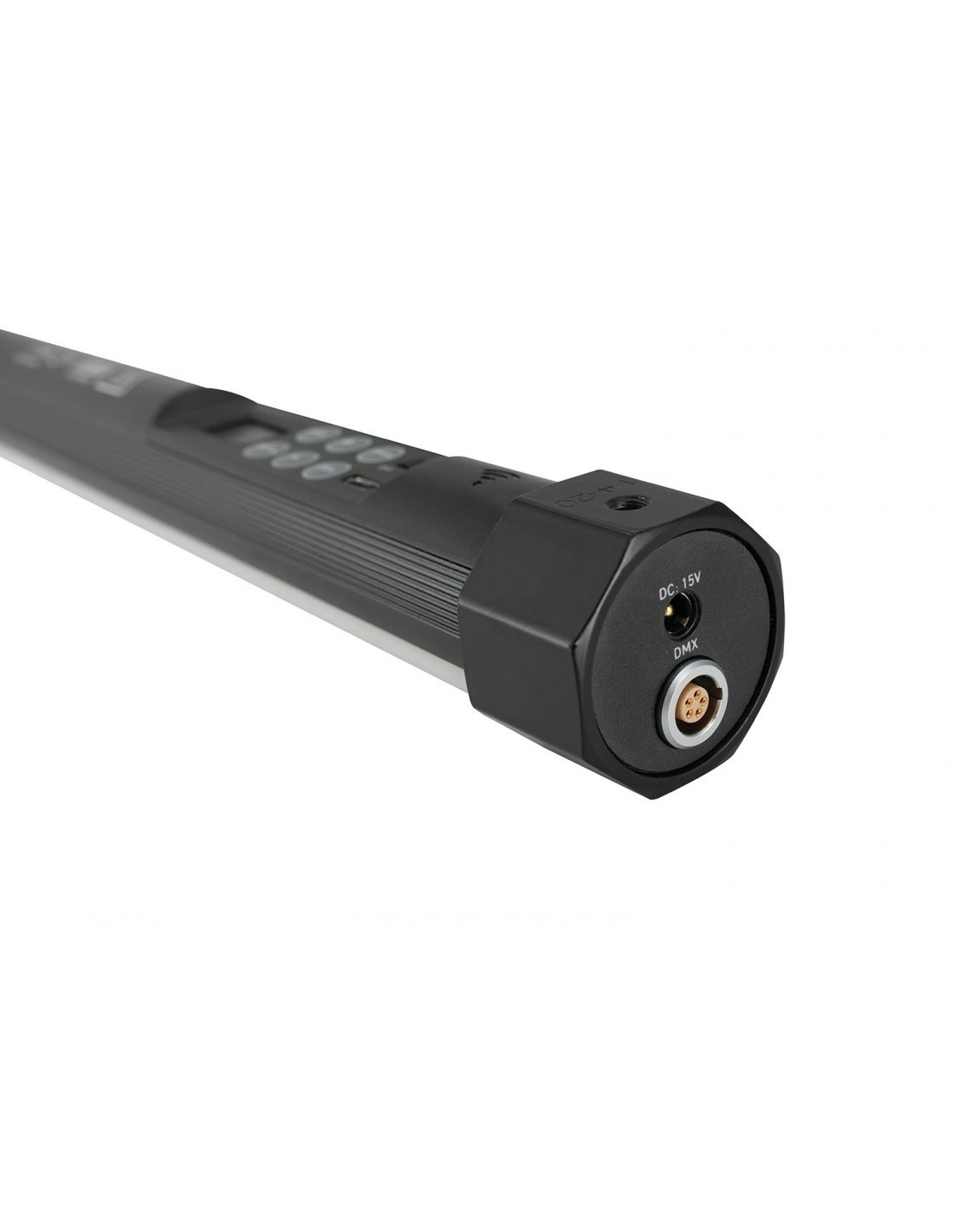 Consumo de energía: 18W, Fuente de alimentación: DC15V / 4A, 100-240V AC 50 / 60Hz, CRI/TLCI: 96/98, Temperatura de color: 2700K-12000K (G / M), Atenuación:0 a 100 % continuo. 15 efectos especiales y 10 efectos de pixel. Control: control a bordo, control inalámbrico 2.4G, control Wifi, control sincro, Bluetooth, DMX, RDM. Dimensiones: 43×600mm. Peso: 1.30kg.