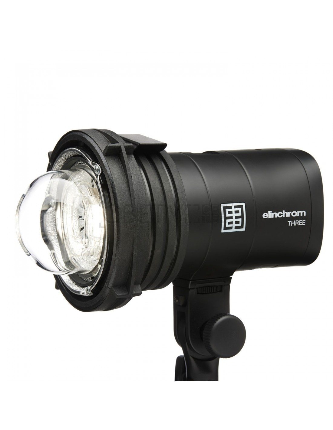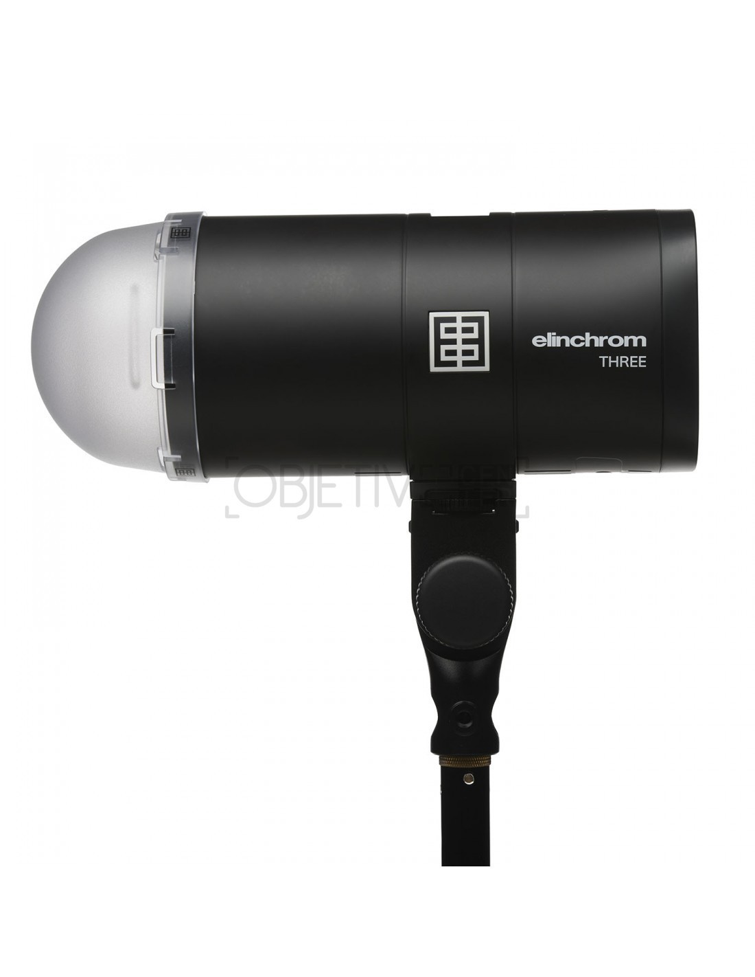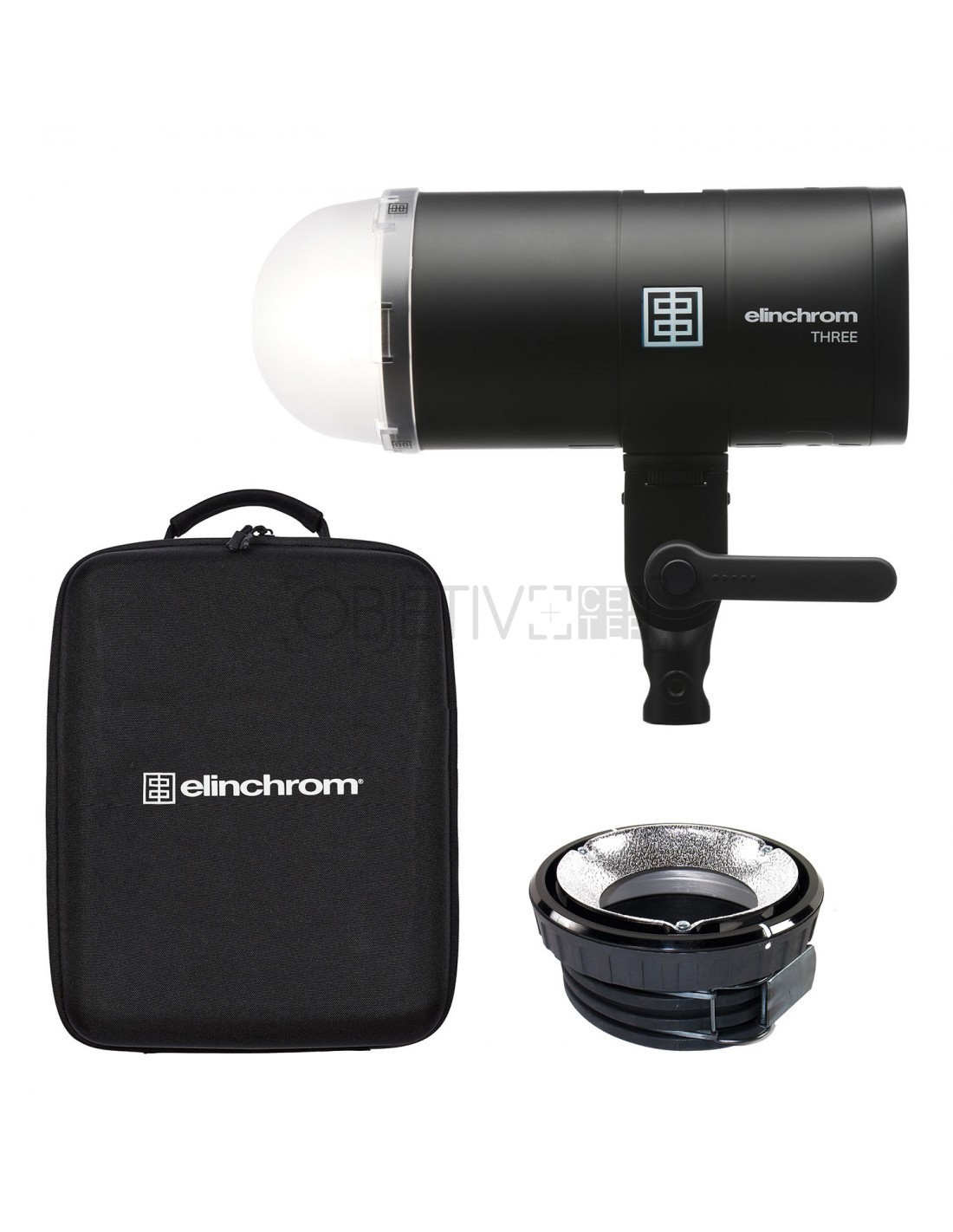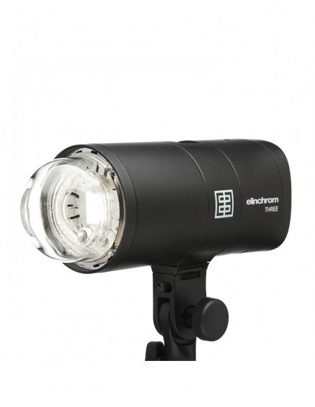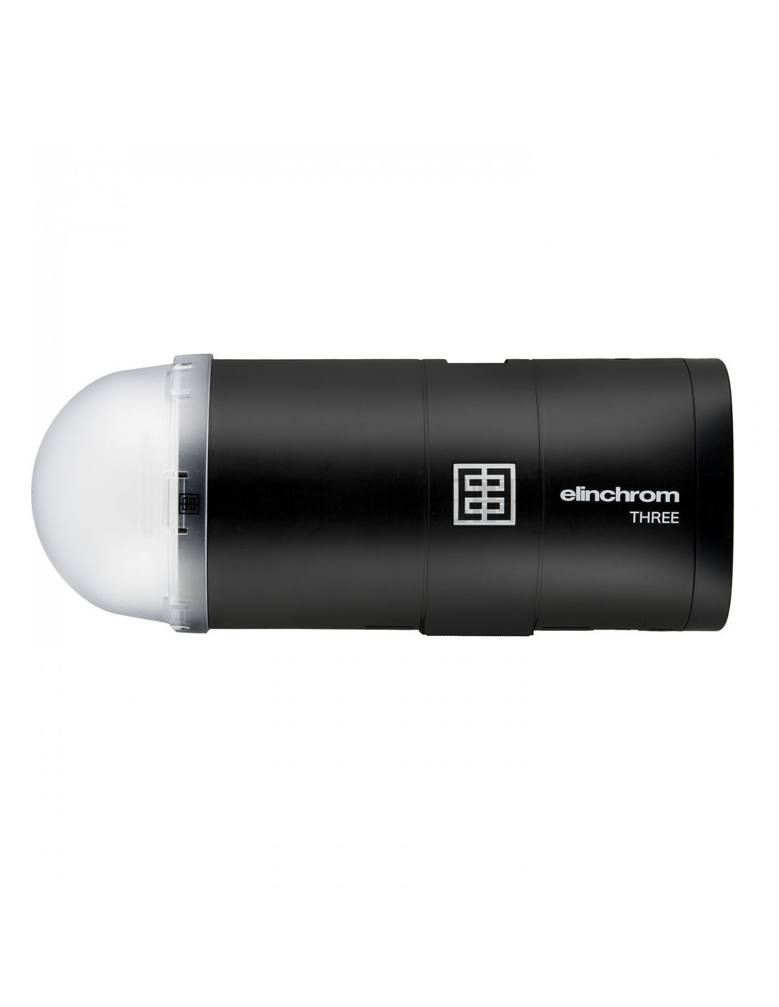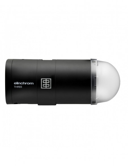 Elinchrom THREE es un off camera flash compacto ligero y muy portatil, con un peso de 1,65 Kg. y unas dimensiones de 24,5 x 10 x 10 cm, admite los accesorios Elinchrom OCF y Profoto OCF ademas de la gama completa de modificadores de luz Elinchrom mediande el adaptador Elinchrom / Profoto OCF incluido. 525 disparos a plena potencia, con 261 Ws de potencia proporciona un F: 22 a 1 metro 100 ISO con el capuchón difusor y F: 64,3 con el reflector HP. Bateria de Iones de litio incorporada, Bluetooht incorporado para control desde la App (IOS, Android) y el software elinchrom (Mac, PC), ventilador activo, pantalla táctil, TTL, HSS, carga activa a red y alimentación / carga mediante Power Bank (recomendado 18w. 20000mAh) por el puerto USB-C.