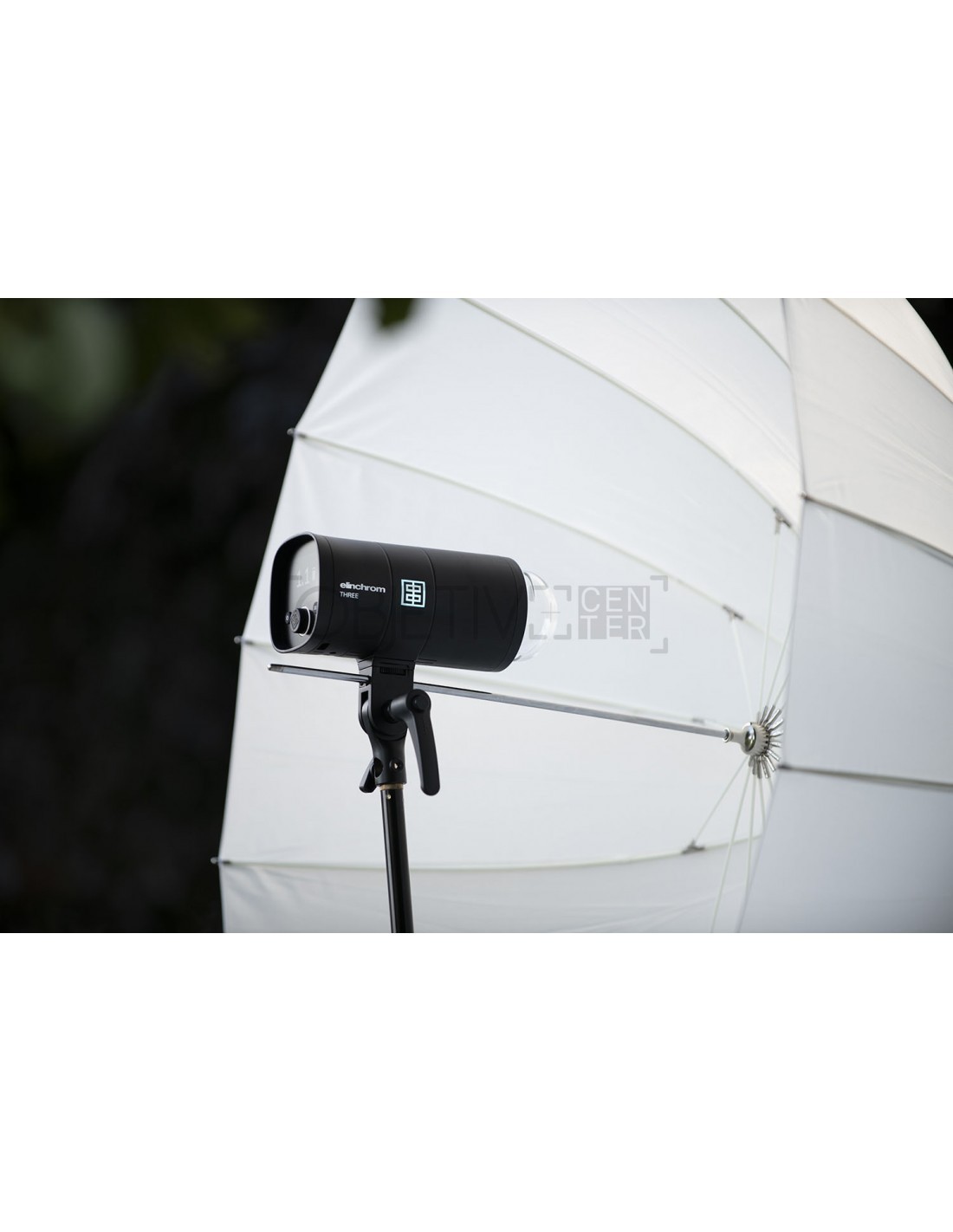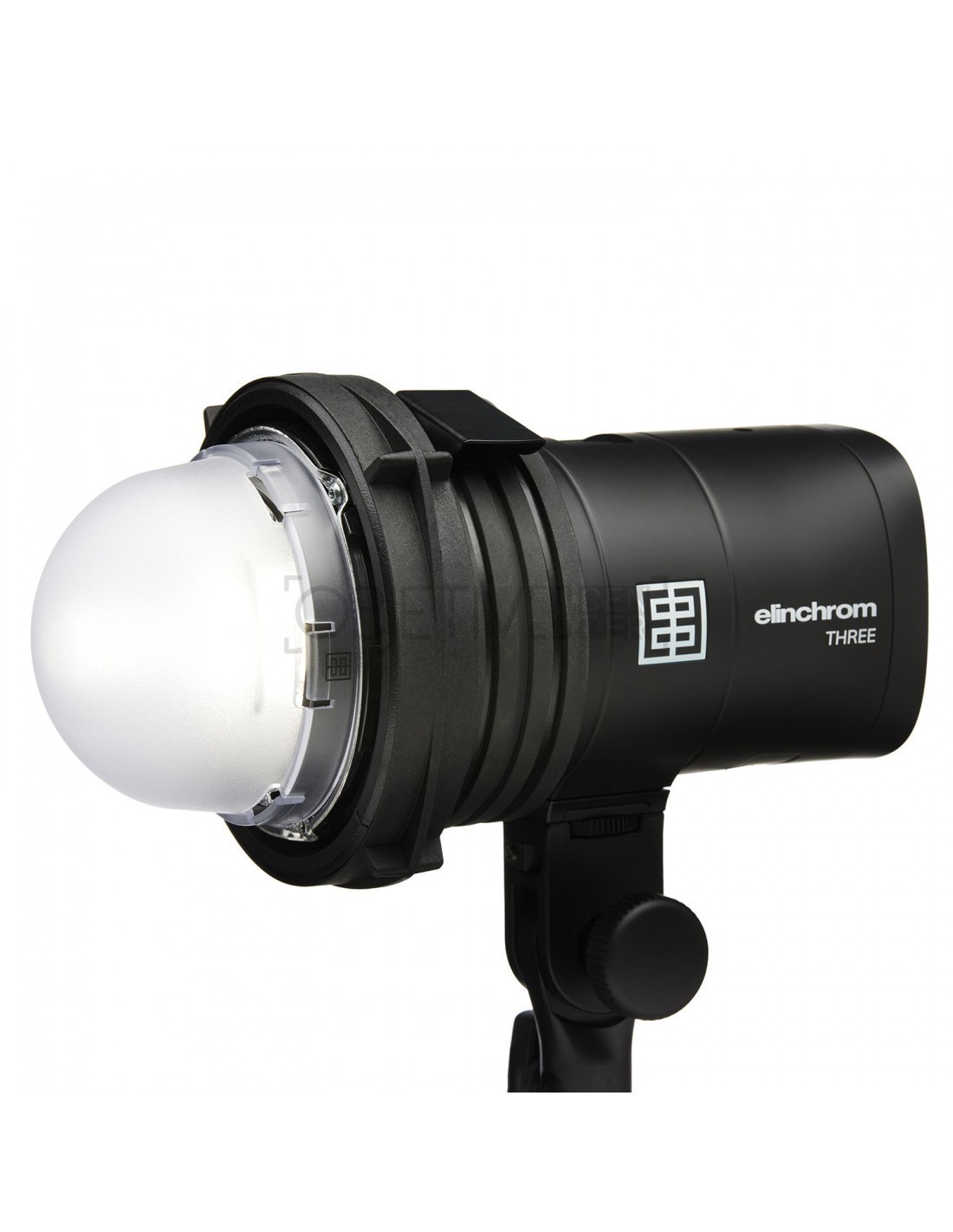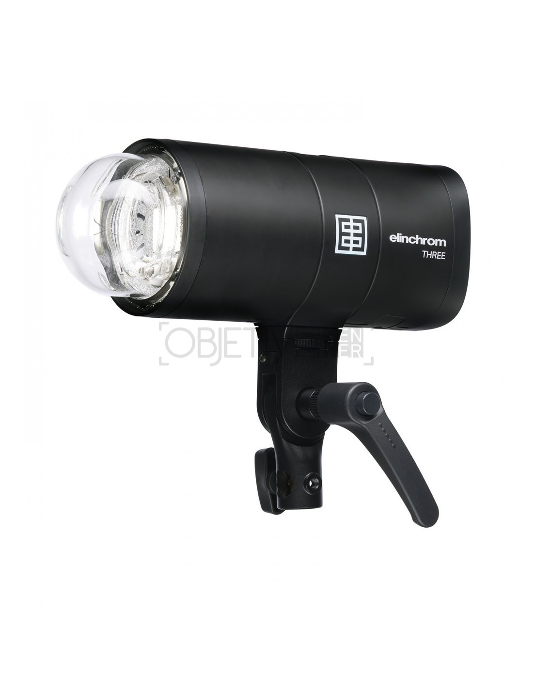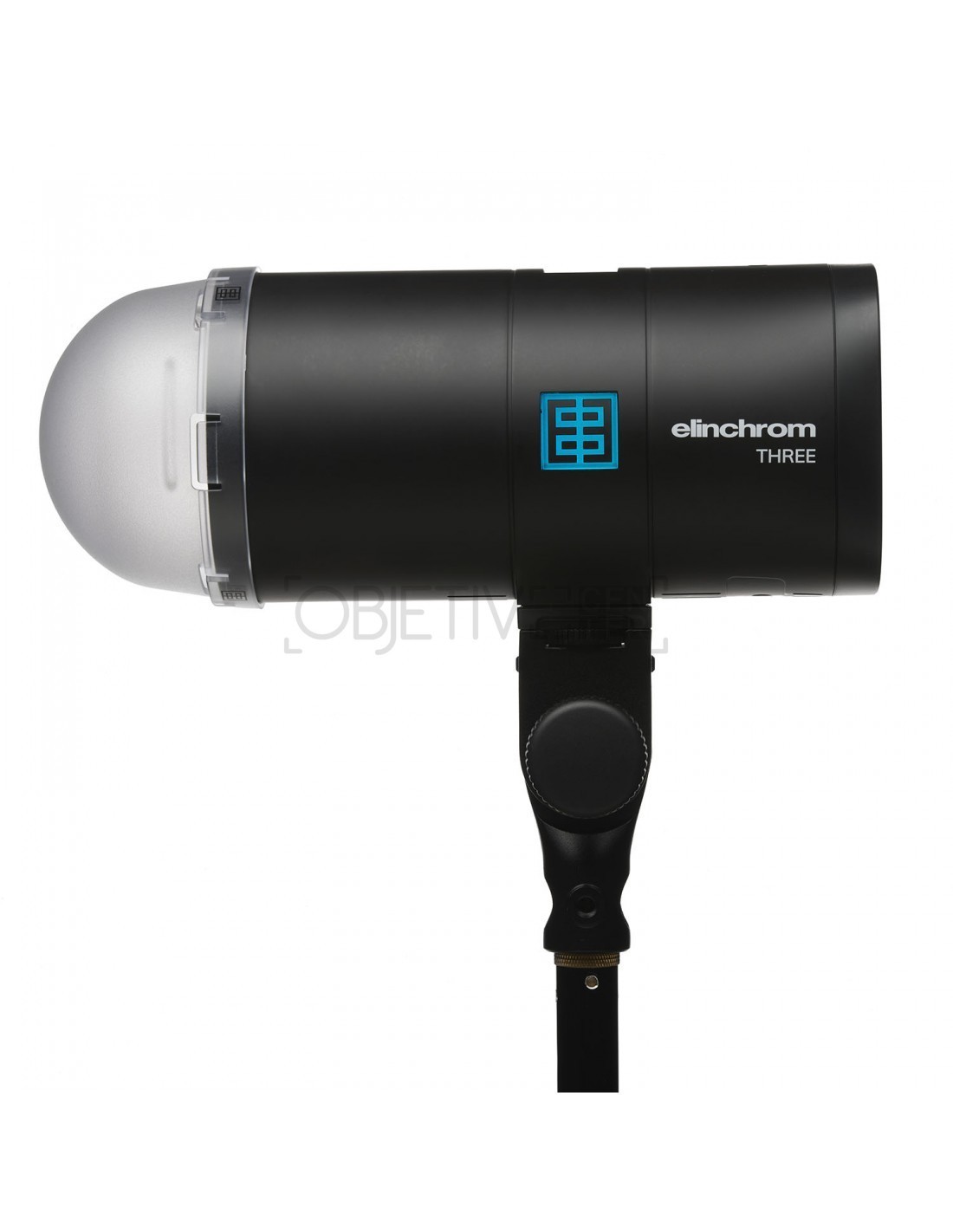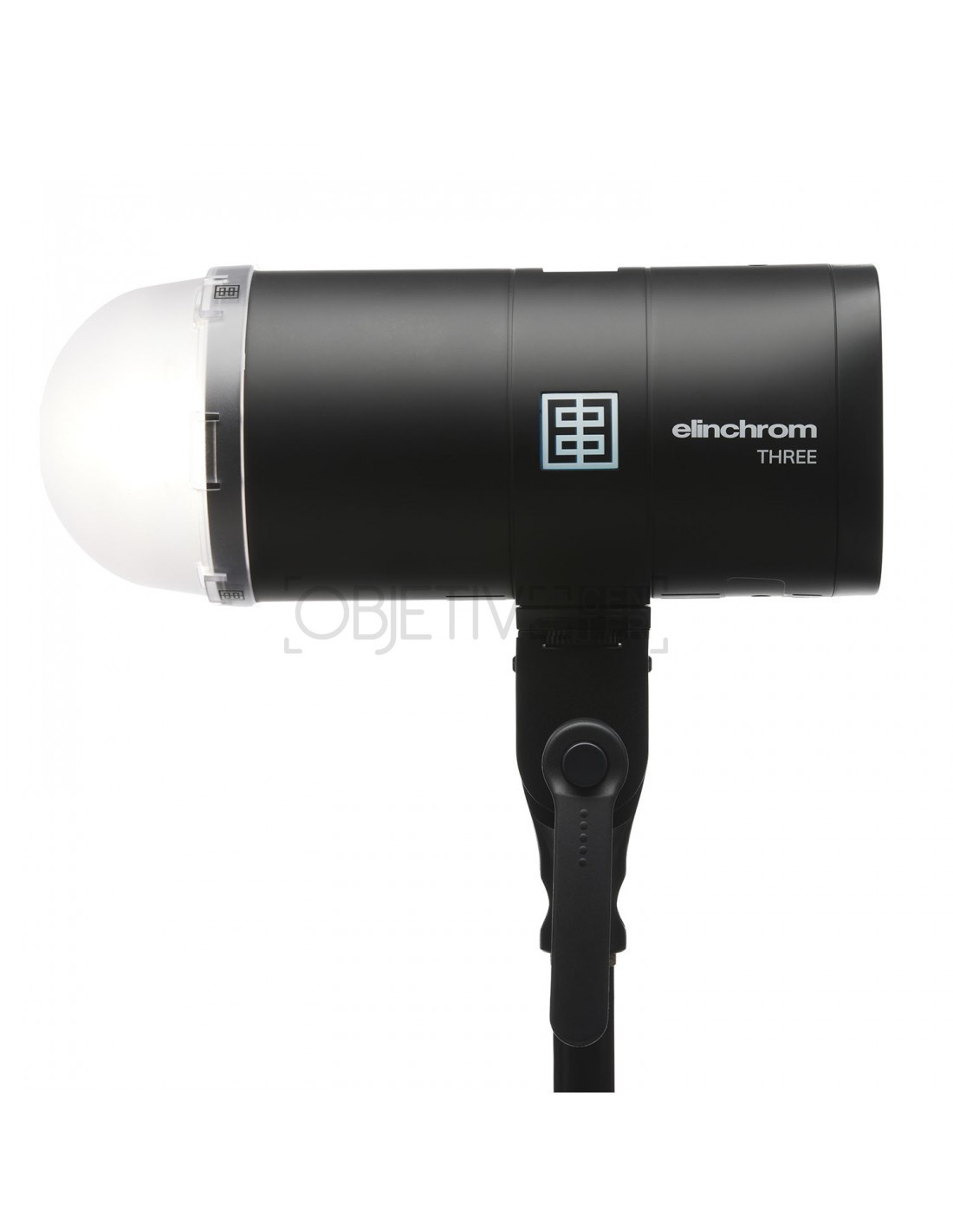 Elinchrom THREE es un off camera flash compacto ligero y muy portatil, con un peso de 1,65 Kg. y unas dimensiones de 24,5 x 10 x 10 cm, admite los accesorios Elinchrom OCF y Profoto OCF ademas de la gama completa de modificadores de luz Elinchrom mediande el adaptador Elinchrom / Profoto OCF incluido. 525 disparos a plena potencia, con 261 Ws de potencia proporciona un F: 22 a 1 metro 100 ISO con el capuchón difusor y F: 64,3 con el reflector HP. Bateria de Iones de litio incorporada, Bluetooht incorporado para control desde la App (IOS, Android) y el software elinchrom (Mac, PC), ventilador activo, pantalla táctil, TTL, HSS, carga activa a red y alimentación / carga mediante Power Bank (recomendado 18w. 20000mAh) por el puerto USB-C.