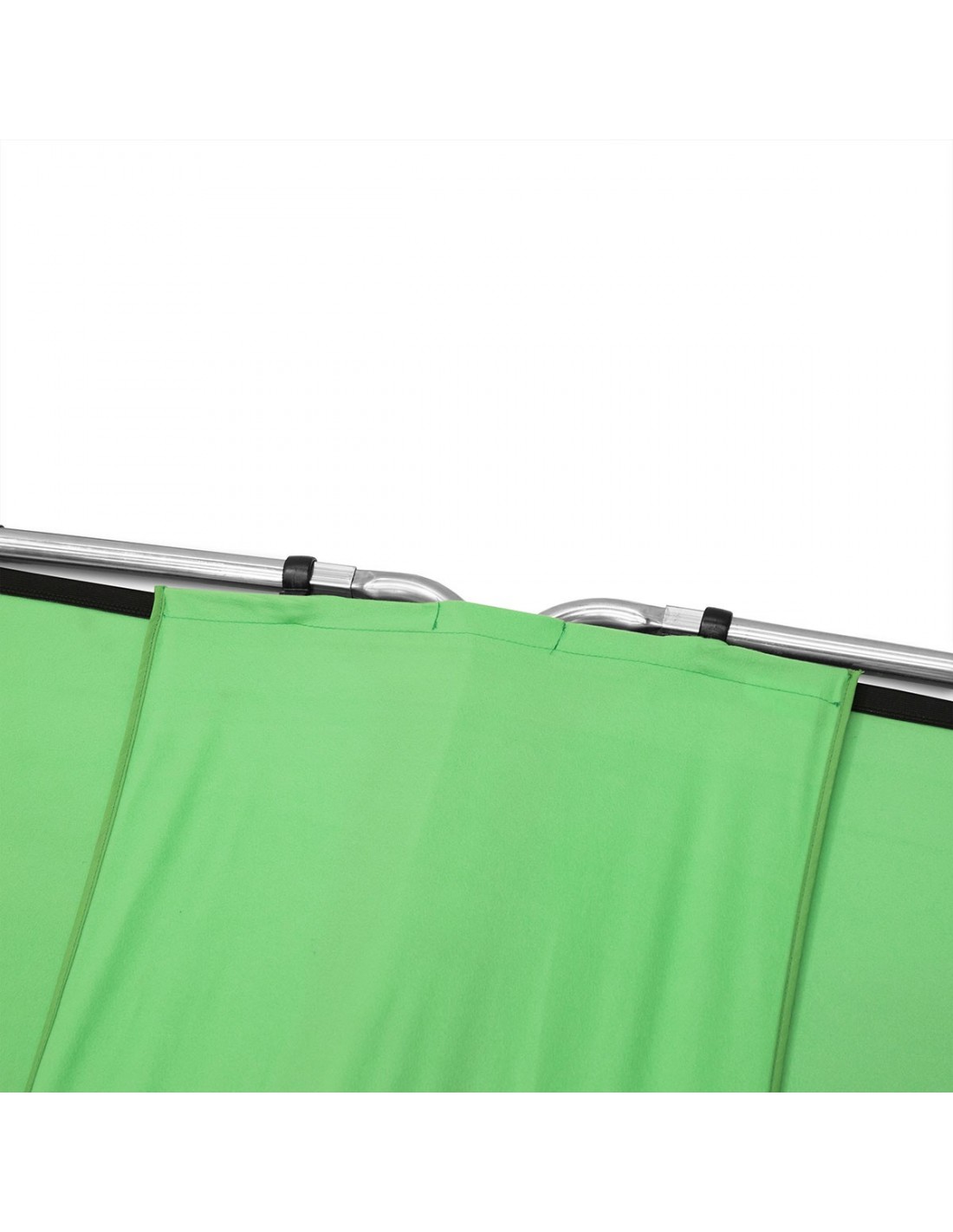 El Kit de Conexión para Studio LInk 3x3 m. Verde ChromaKey de Manfrotto, está compuesto por un Telón de union para fondos, con sistema de ajuste Click y visagras de conexión para Marco de aluminio.