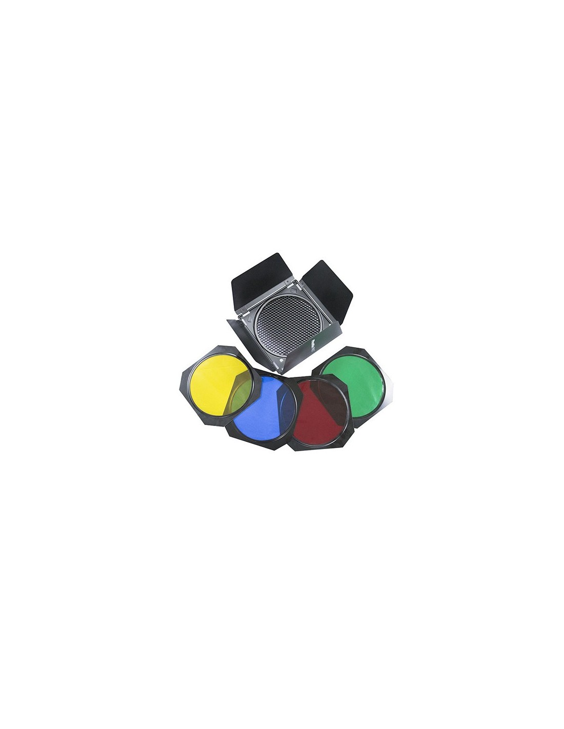 Con éste juego de 4 filtros de color el profesional podrá teñir la luz del flash a su antojo, además con ayuda de las viseras desmontables y el panal de abeja de 7” incluidos dirige el haz de luz hacia donde necesites, consiguiendo efectos de luz espectaculares.