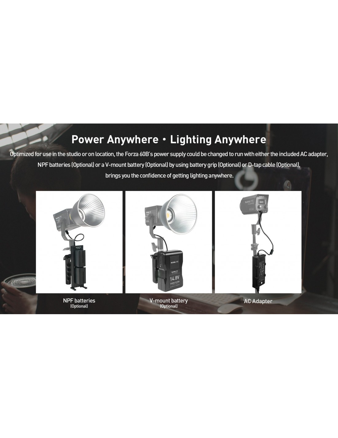 El adaptador a batería funciona con el Forza 60 y ofrece una solución de alimentación en localización muy conveniente y versátil.